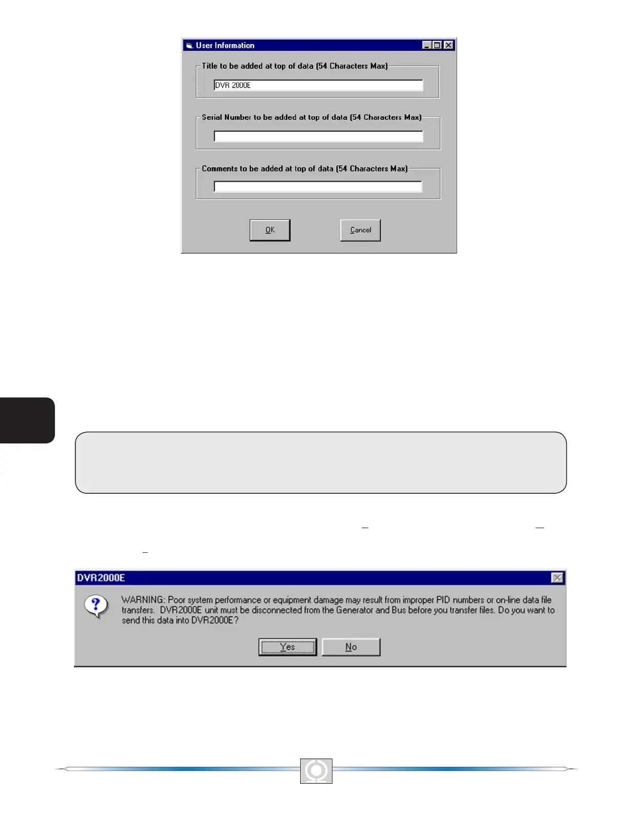 When the le command is given, a dialog box asks if you want to save the current settings into a DVR2000E data