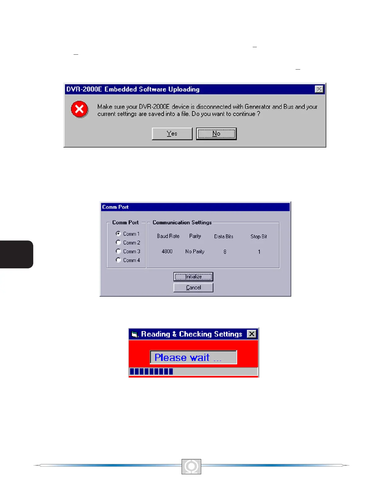 the communication port. When Initialize is selected, PC Software reads , checks within ranges and saves all