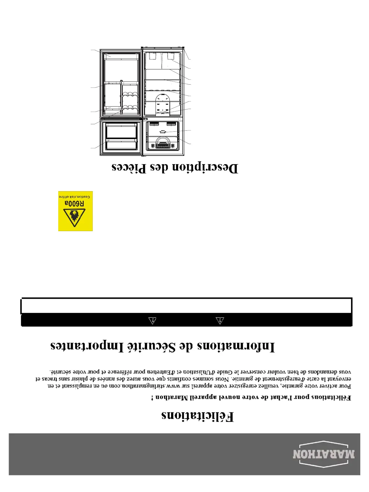 9) Ne pas entreposer ou utiliser de l’essence ou tout autre liquide inflammable et à l’intérieur ou dans à proximité du réfrigérateur.