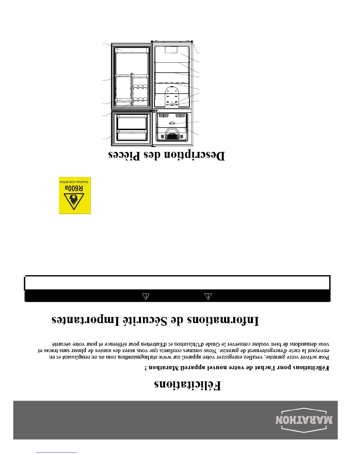 9) Ne pas entreposer ou utiliser de l’essence ou tout autre liquide inflammable et à l’intérieur ou dans à proximité du réfrigérateur.