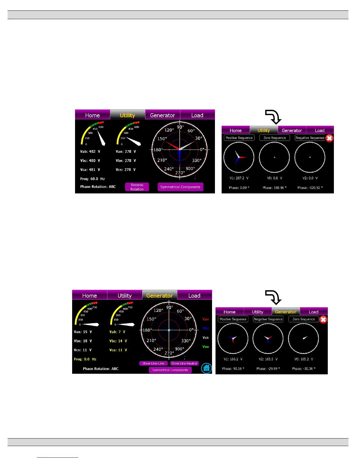 phases. A shortcut button is provided to access the Utility Symmetrical components