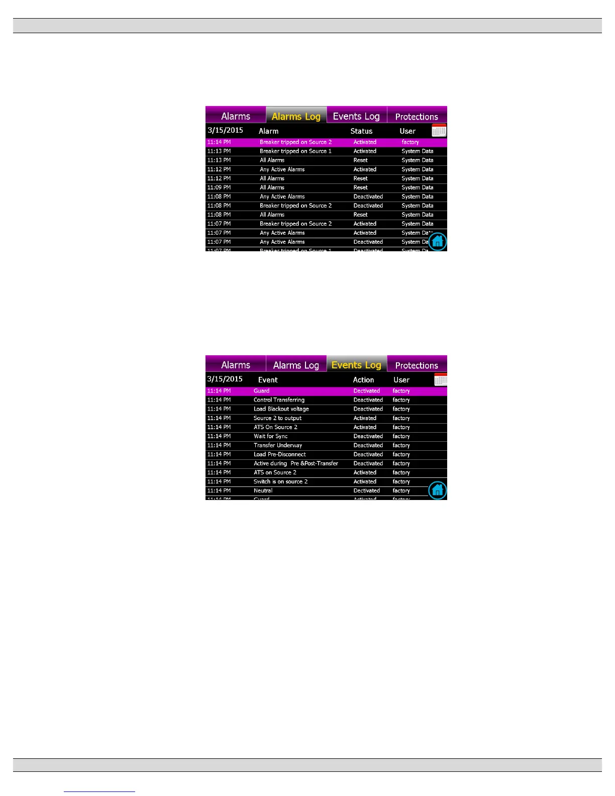 occurred. A drop down menu is provided to select a desired filter to view the logs.