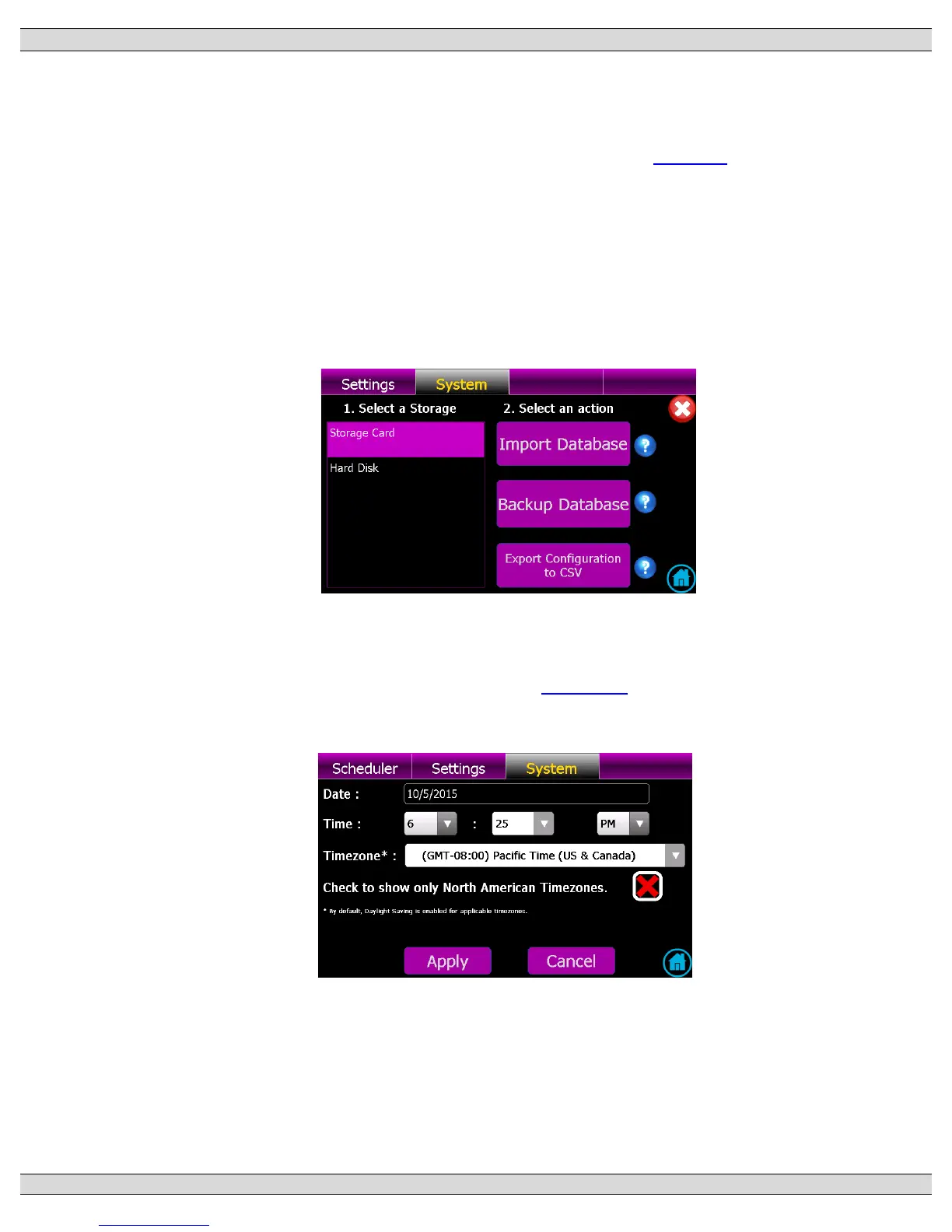 application. Different sub-menu pages are available as shown below. Each System sub-menu