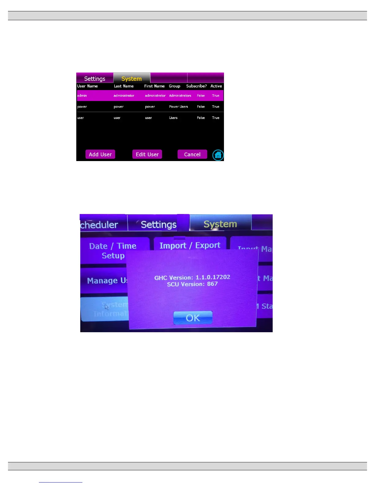 The System page shows what current firmware versions are installed on the TSC 900