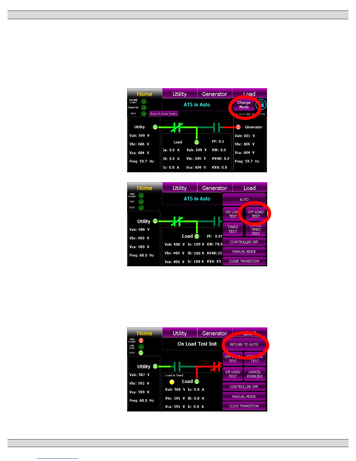 To cancel the “Off load” Test, press the “Change Mode” control button on the GHC Home