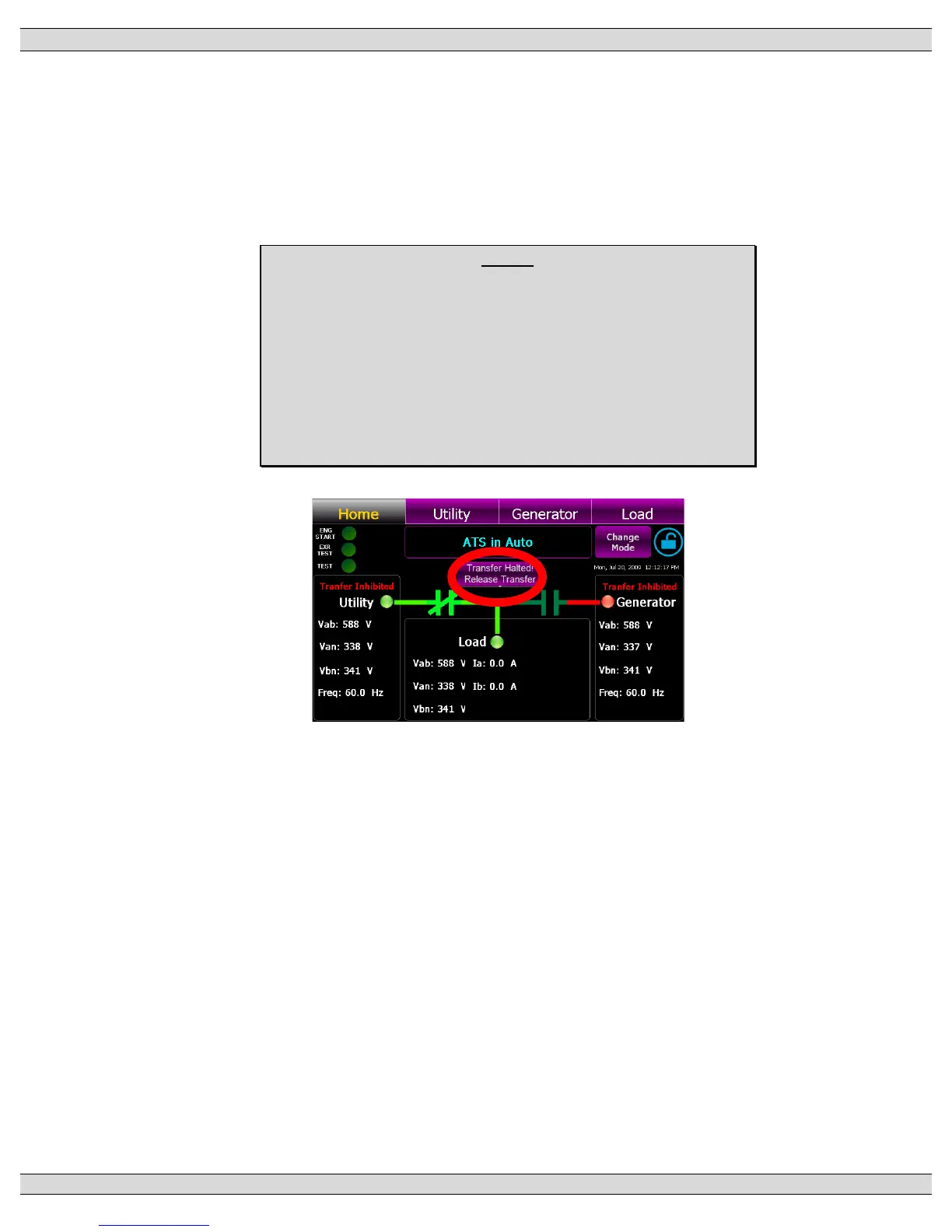 transfer switch will remain in this current position until the Transfer Halted condition is
