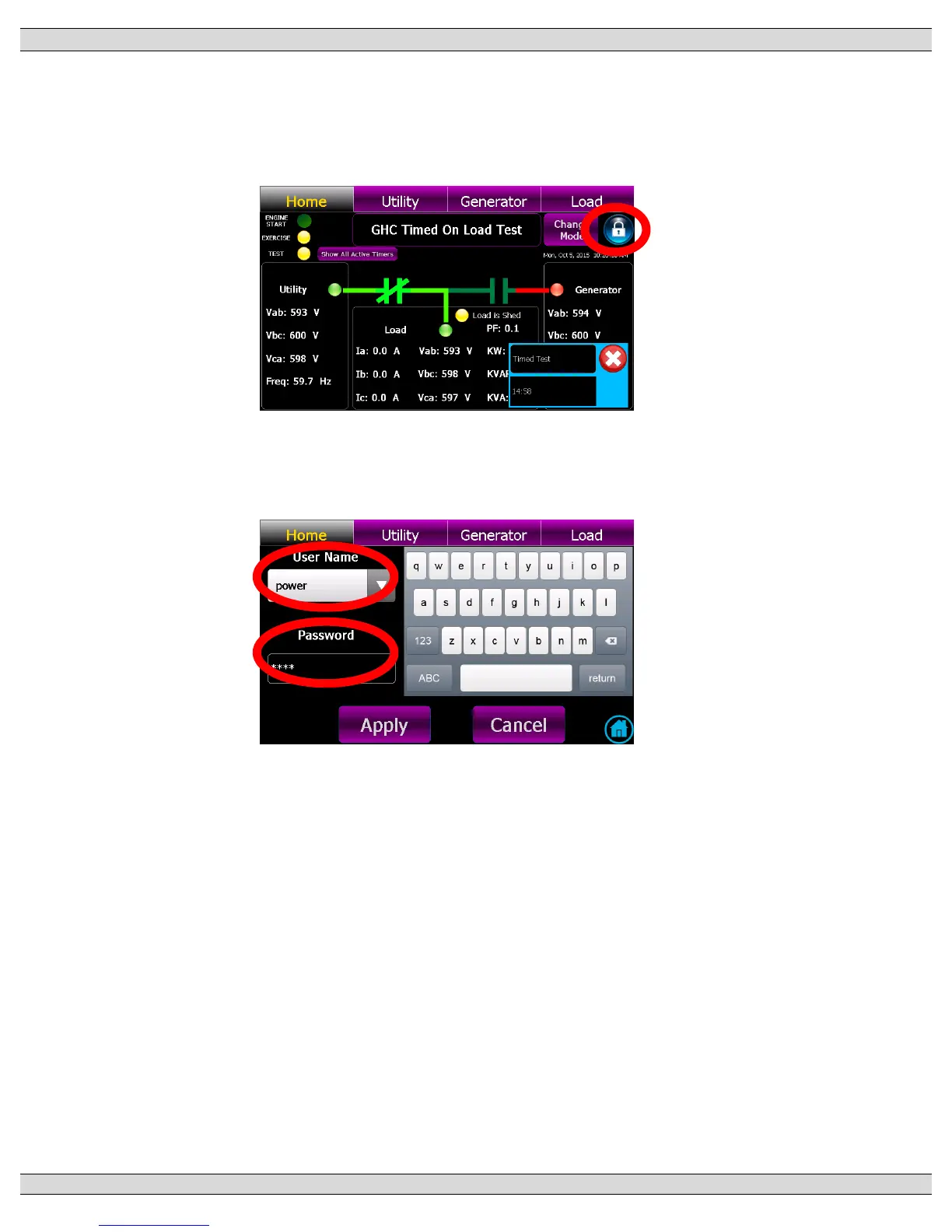 With the transfer switch energized, follow the procedure below to Login to the TSC 900