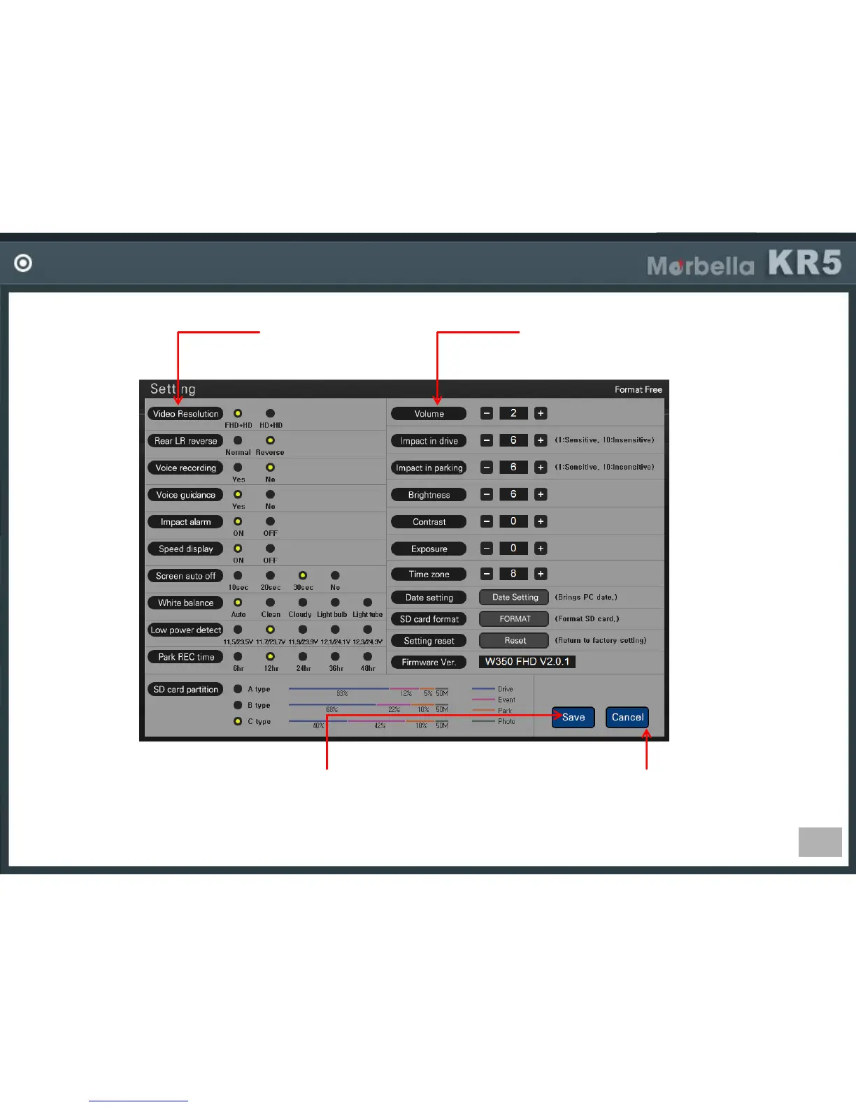 Marbella KR5 - PC Viewer Settings; PC Viewer Setting Categories; Adjusting Setting Values; Saving and Canceling Settings
