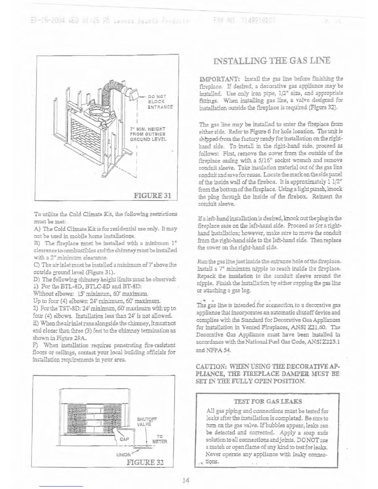 Marco B36CF - Installing the Gas Line; Test for Gas Leaks