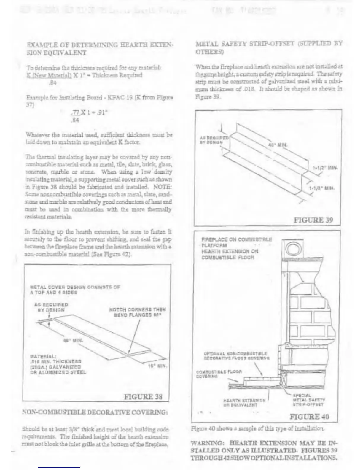 Marco B36CF - Example of Determining Hearth Extension Equivalent; Metal Safety Strip-Offset (Supplied by Others); Non-Combustible Decorative Covering