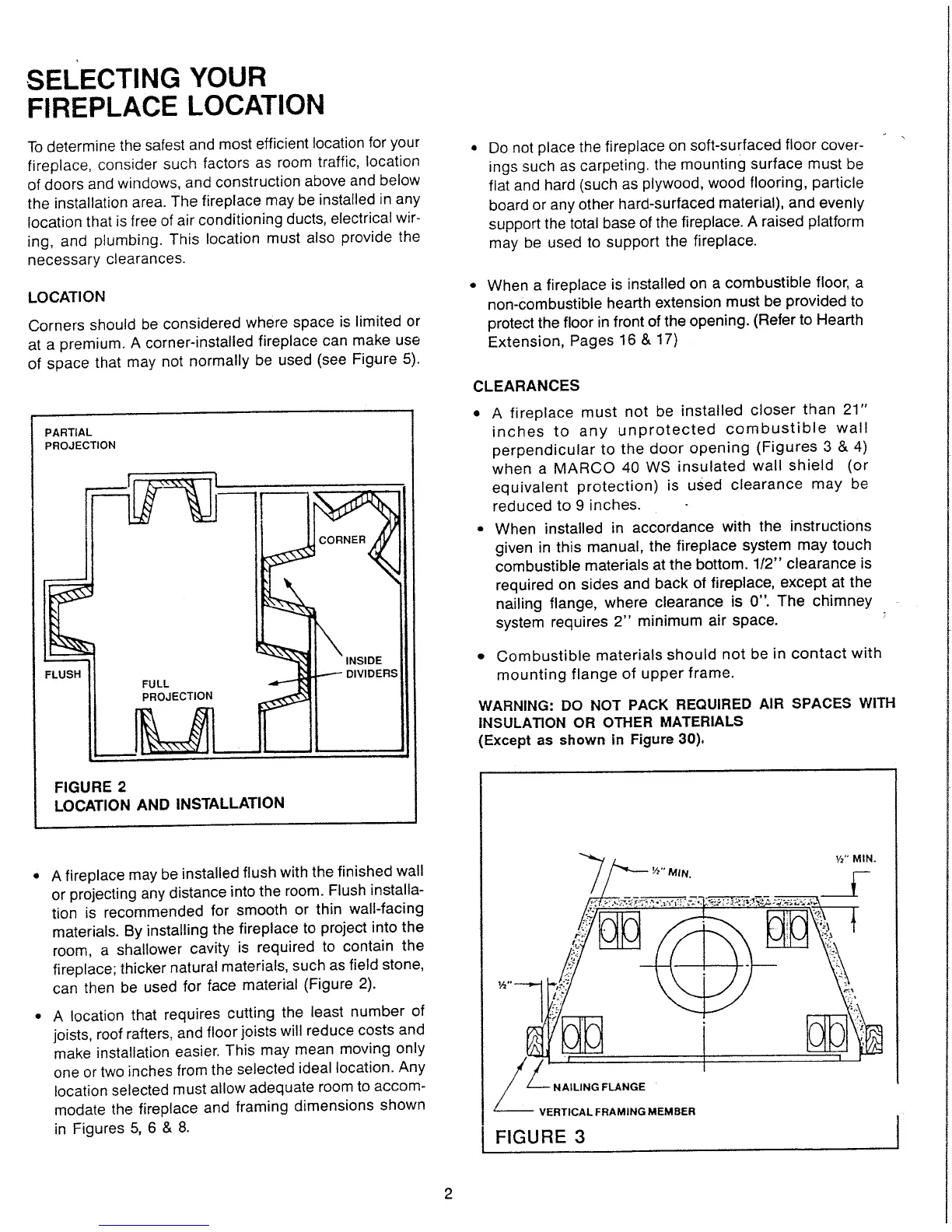 Marco C41CF - Selecting Your Fireplace Location; Clearances