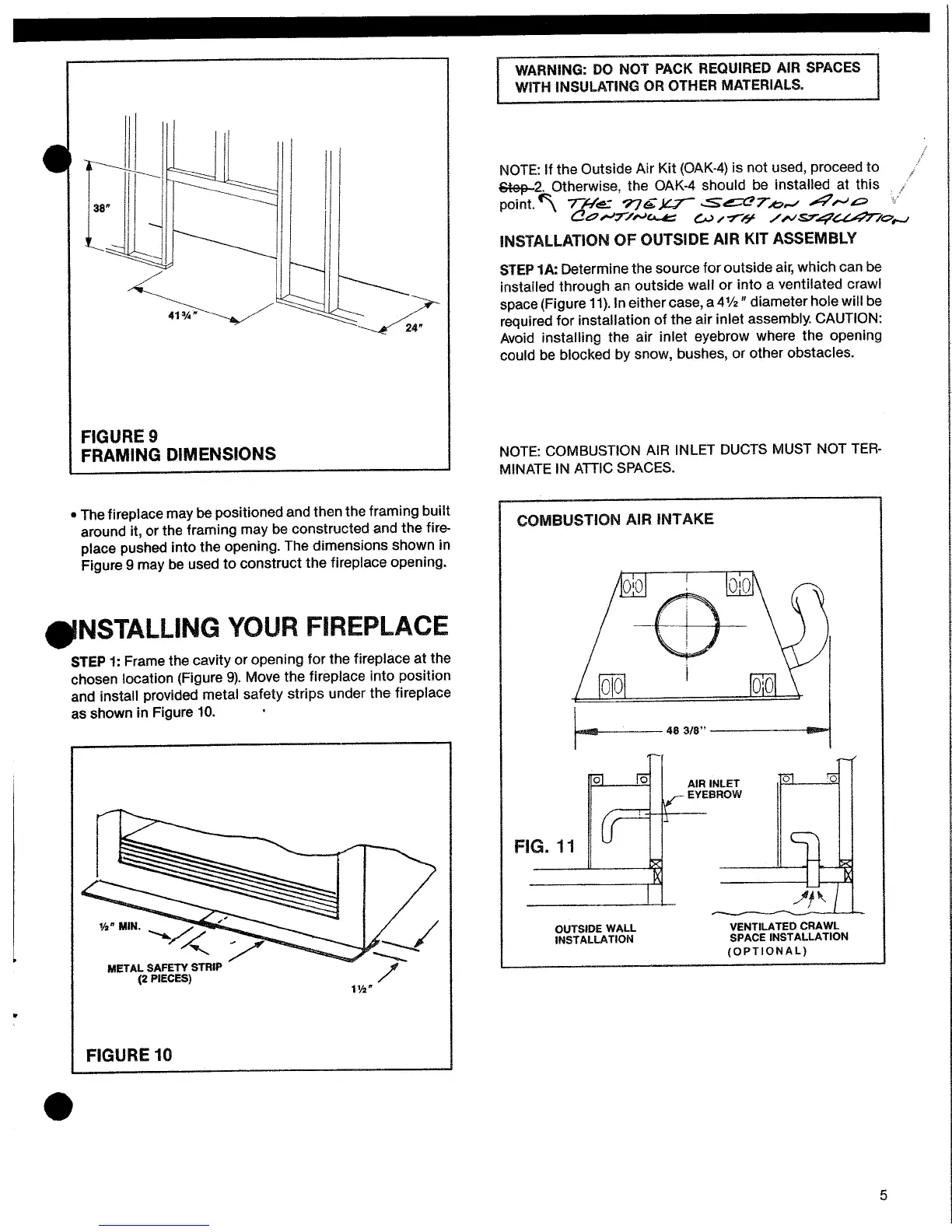 Marco DWF36GO-3 - Installing Your Fireplace; Installation of Outside Air Kit