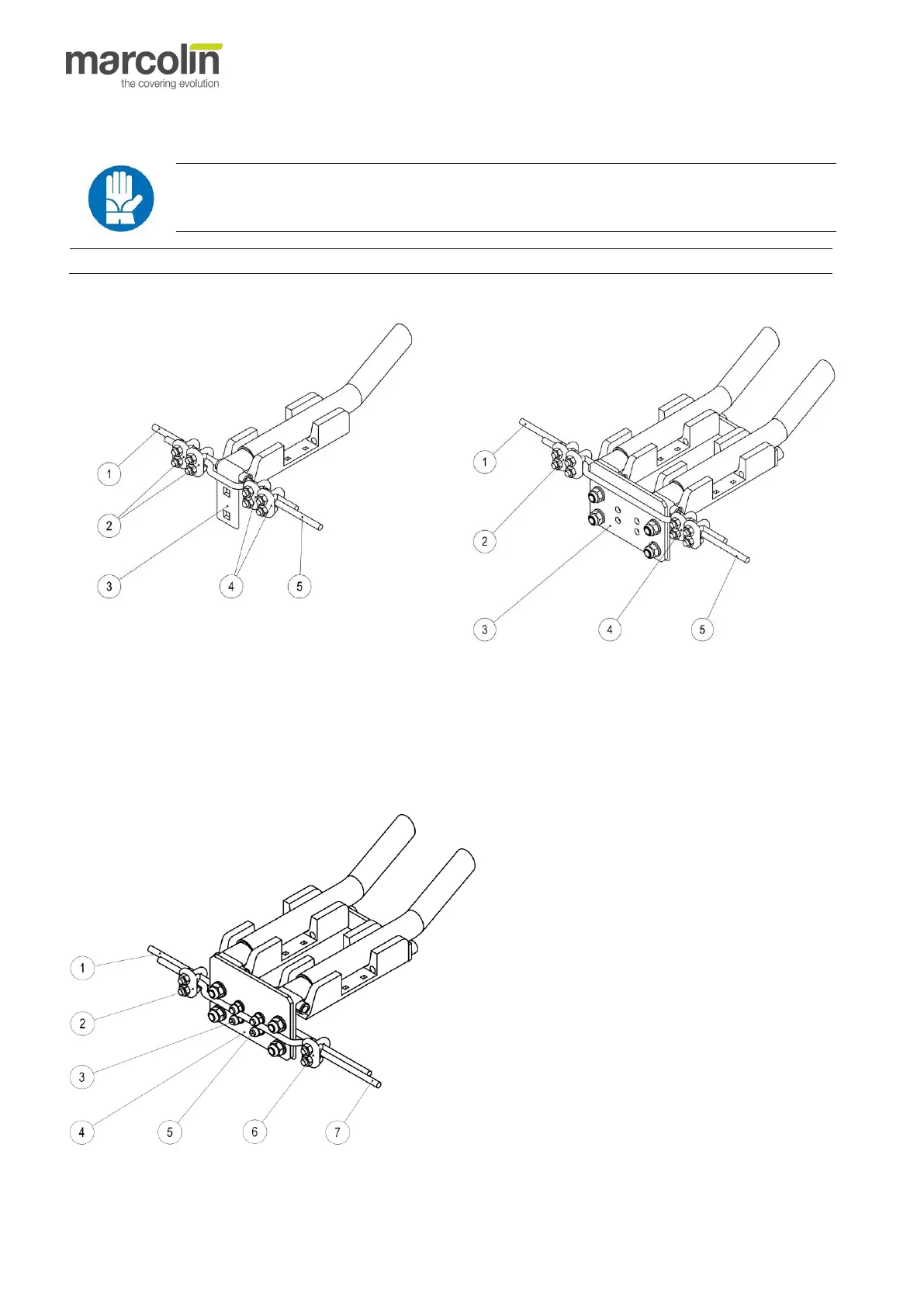 3. Fasten both ends of the cable (1) & (5) pulling them through the specific supplied clamps (2) & (4).