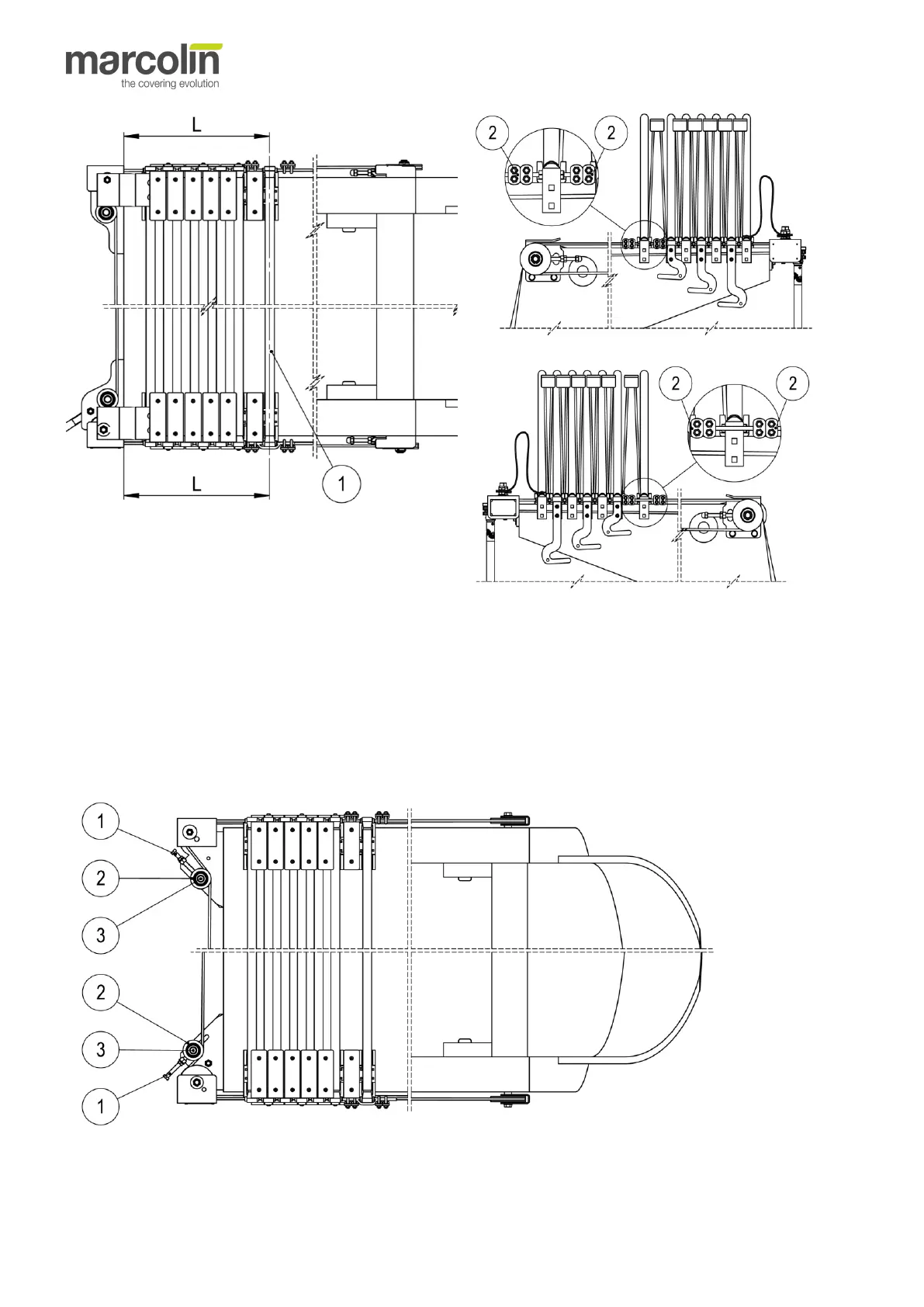 After positioning the steel cables, tighten them up by applying the process described for the rear drive pulleys in order to
