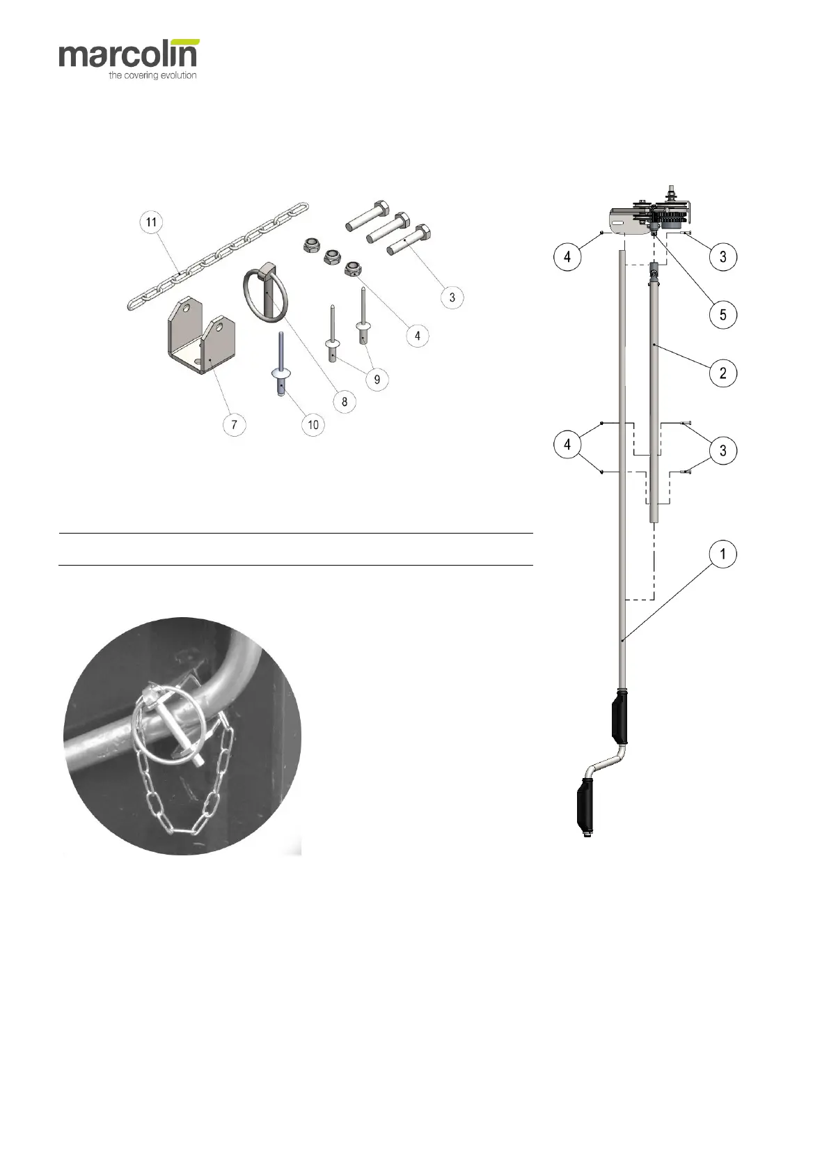 3.5 Fastening the operating rod (hand-operated covering system)