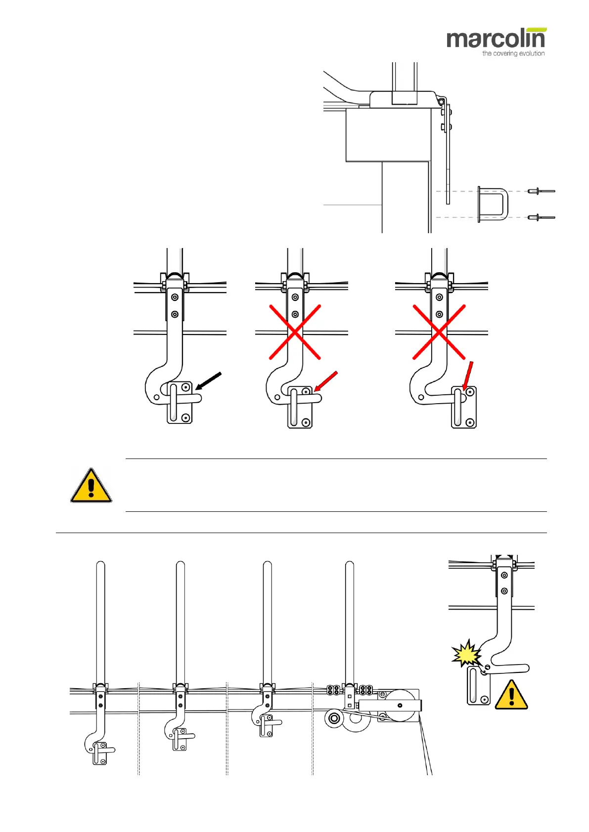 Before fastening the respective hooking, Check that while folding the tarpaulin the safety hook is fastened on a