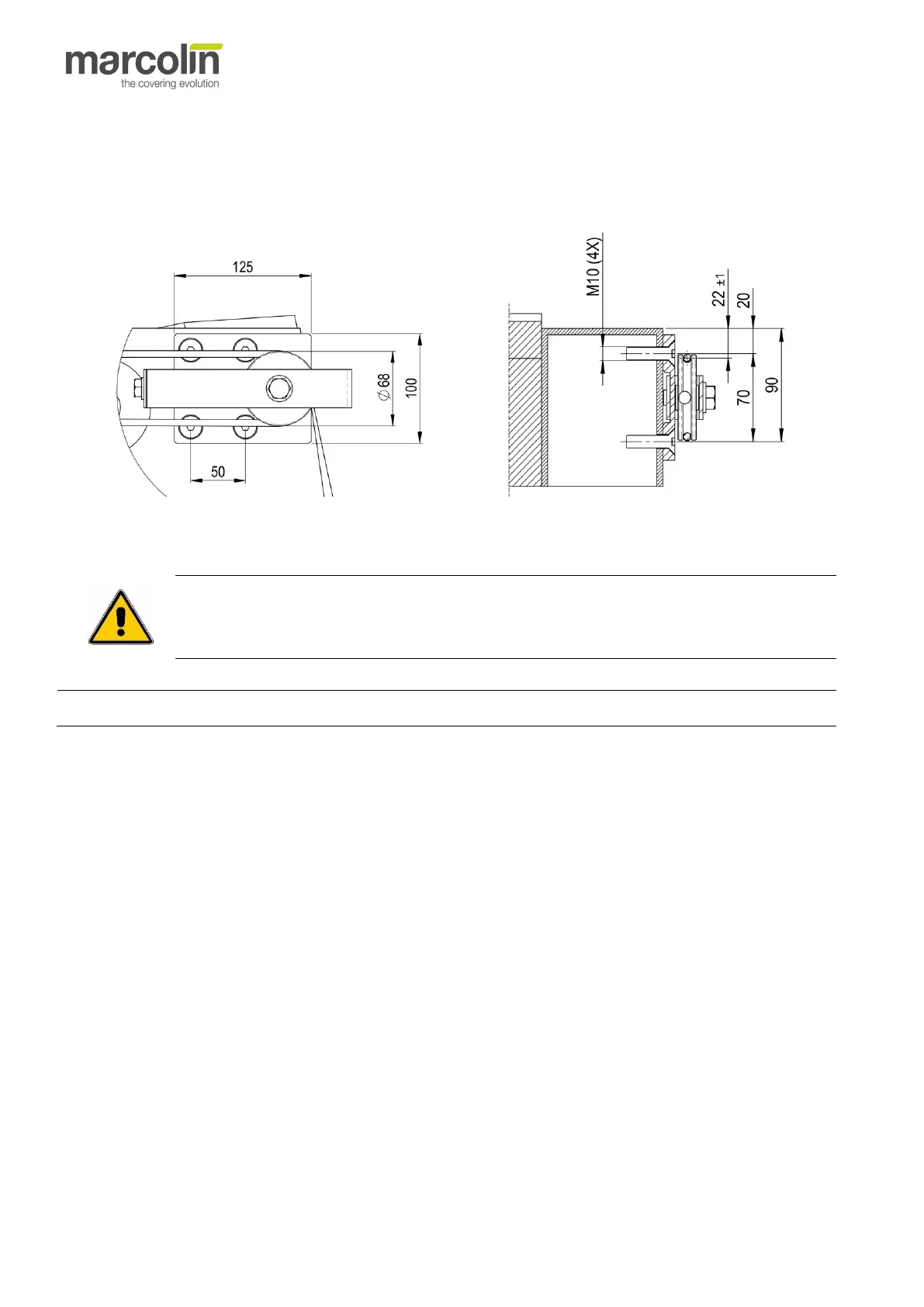 1. For the correct operation of the covering, ensure that the axis of the lower plate fixing hole is located at a distance of 90