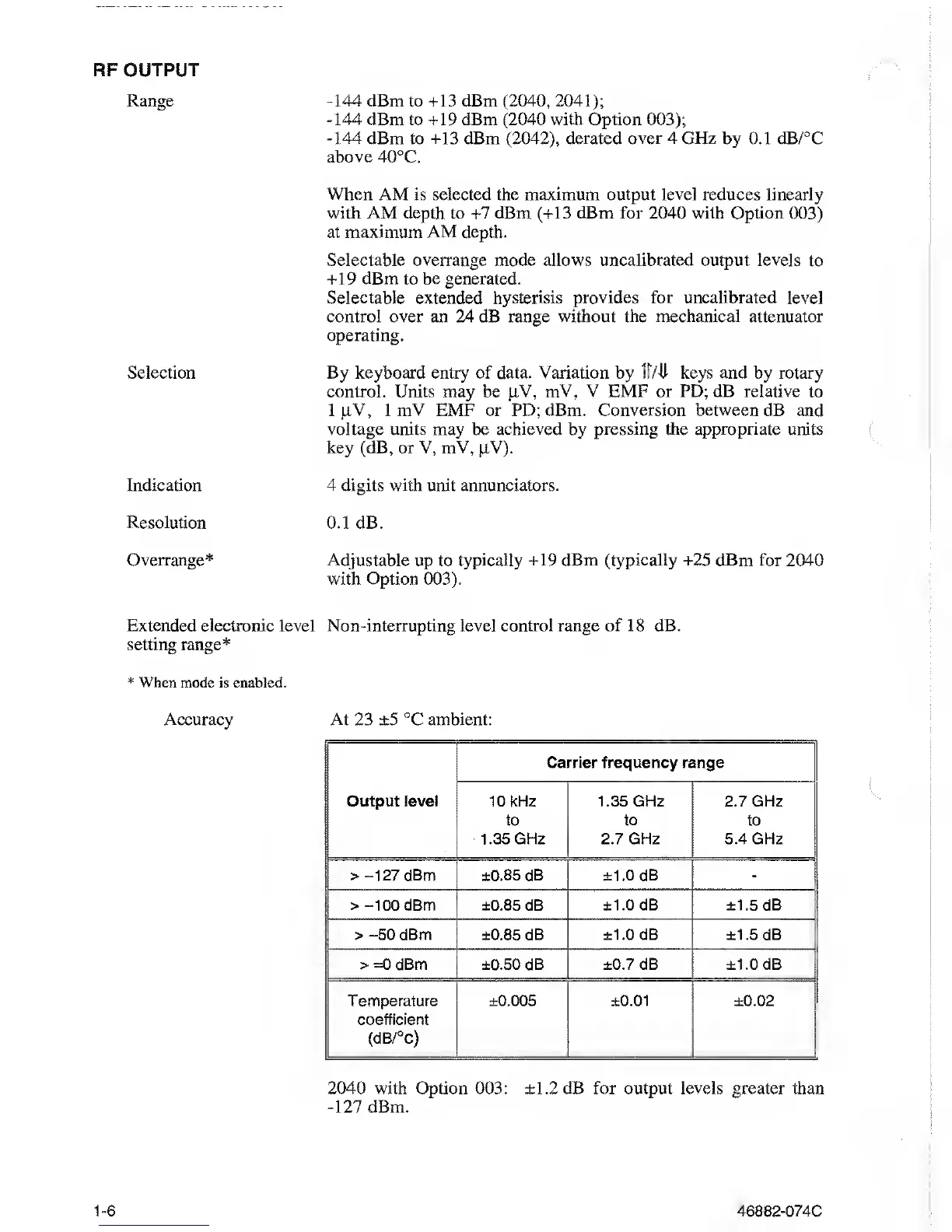2040 with Option 003: ±1.2 dB for output levels greater than