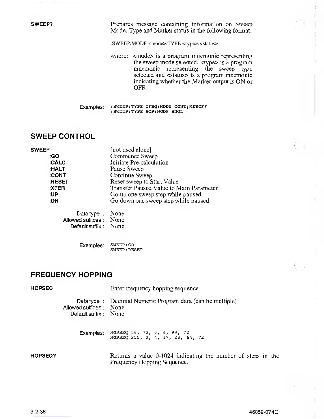 : SWEEP: TYPE HOP: MODE SNGL