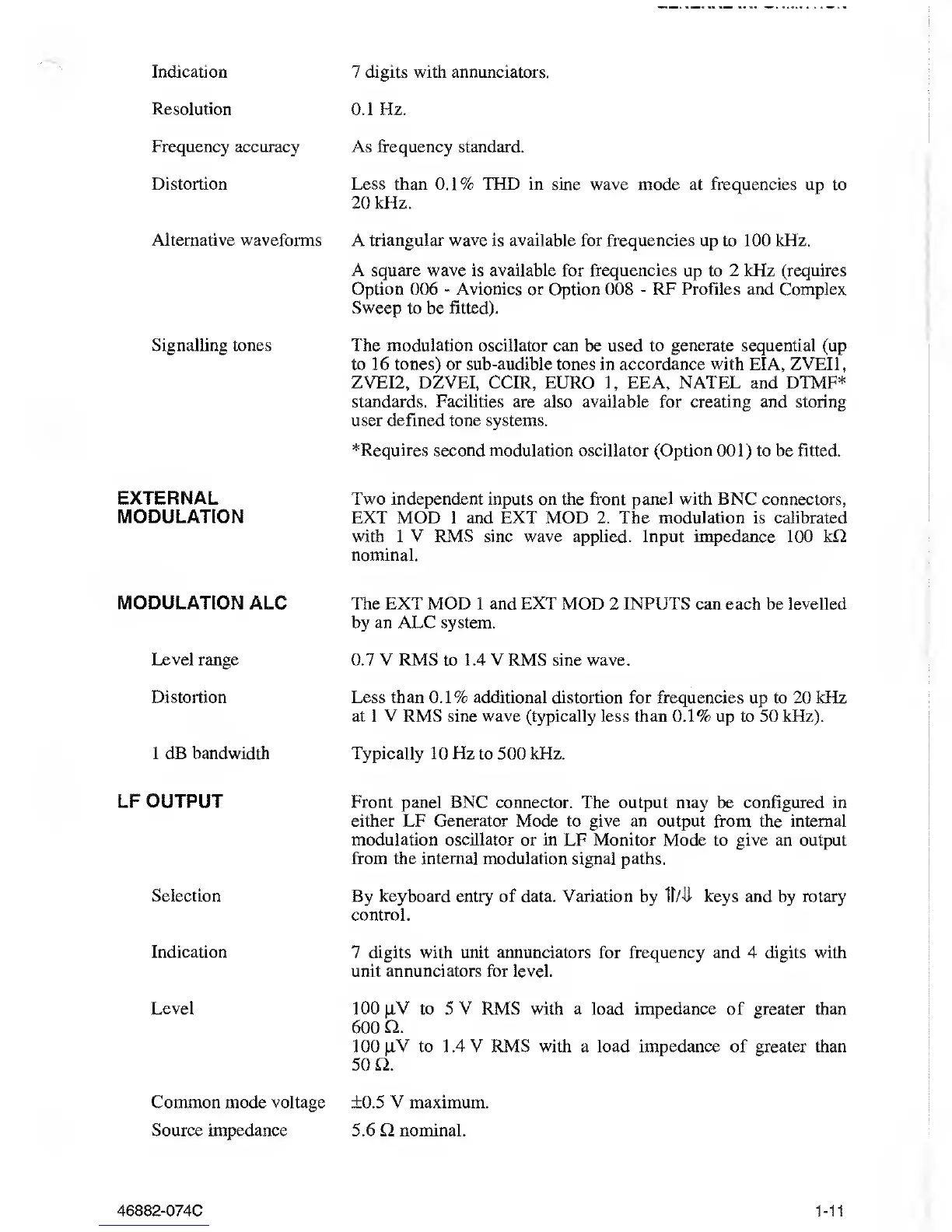 EXT MOD 1 and EXT MOD 2. The modulation is calibrated