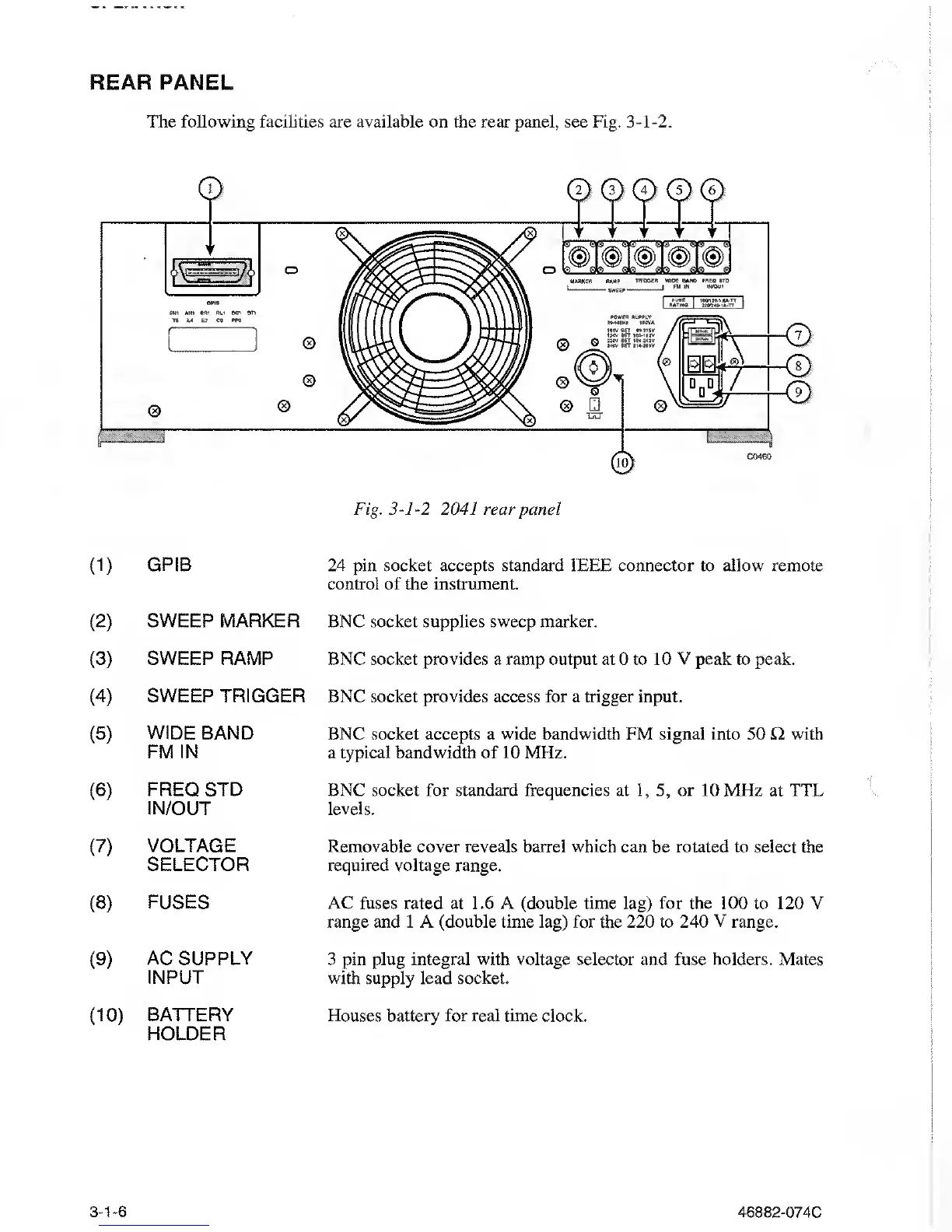 The following facilities are available on the rear panel, see Fig.