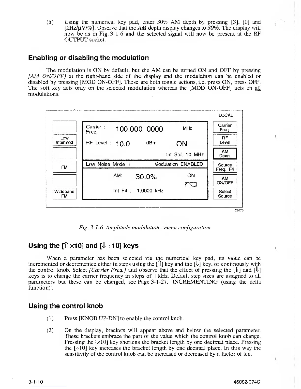 Using the numerical key pad, enter 30% AM depth by pressing