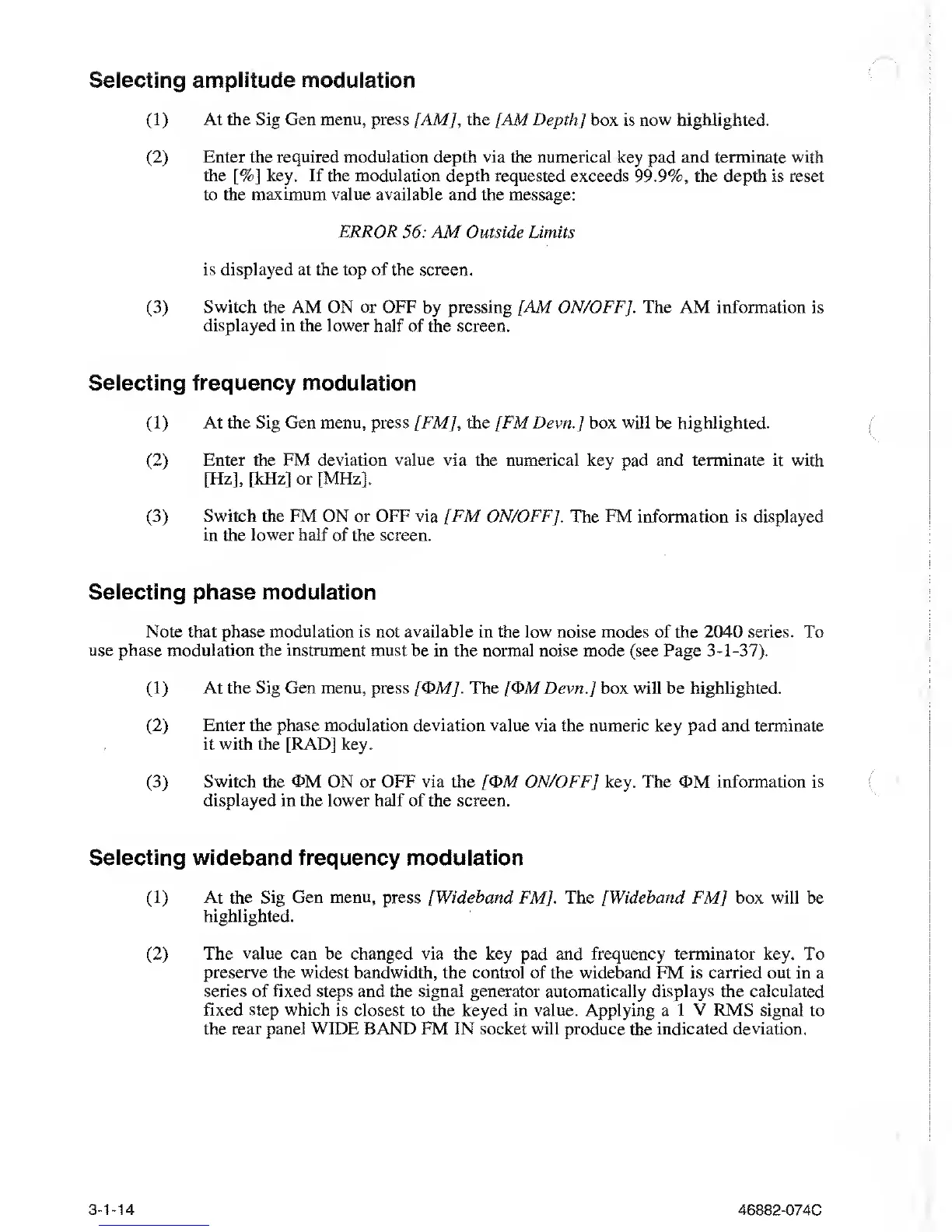 At the Sig Gen menu, press [AM], the [AM Depth] box is now highlighted.