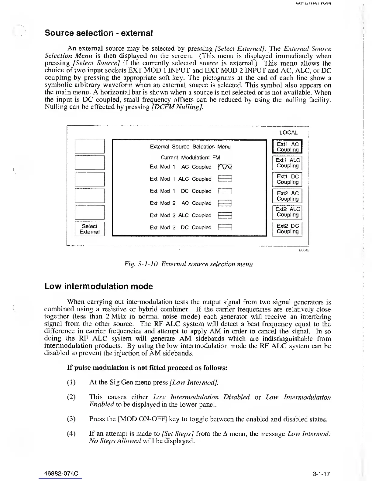 the Sig Gen menu press [Low Intermod].