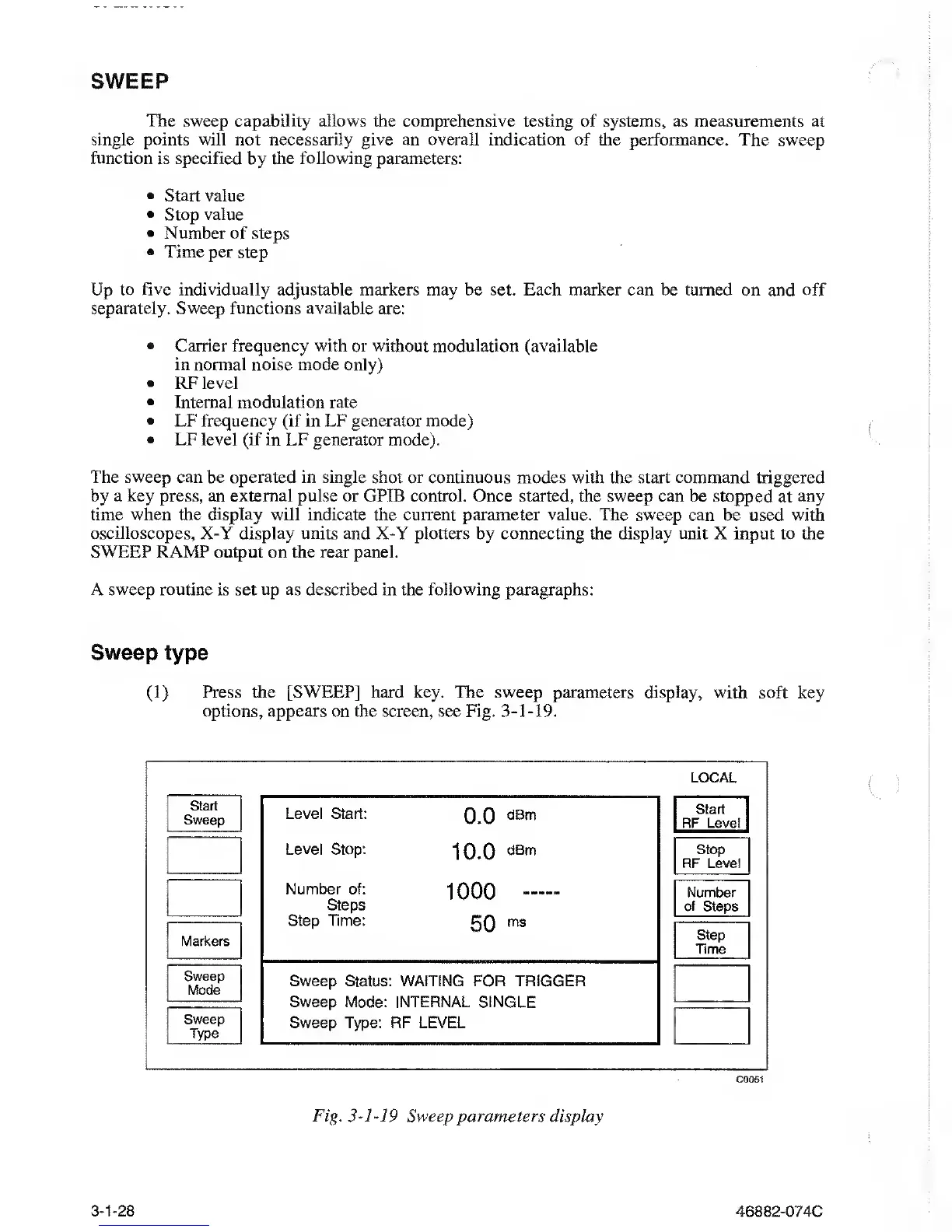 press, an external pulse or GPIB control. Once started, the sweep can be stopped
