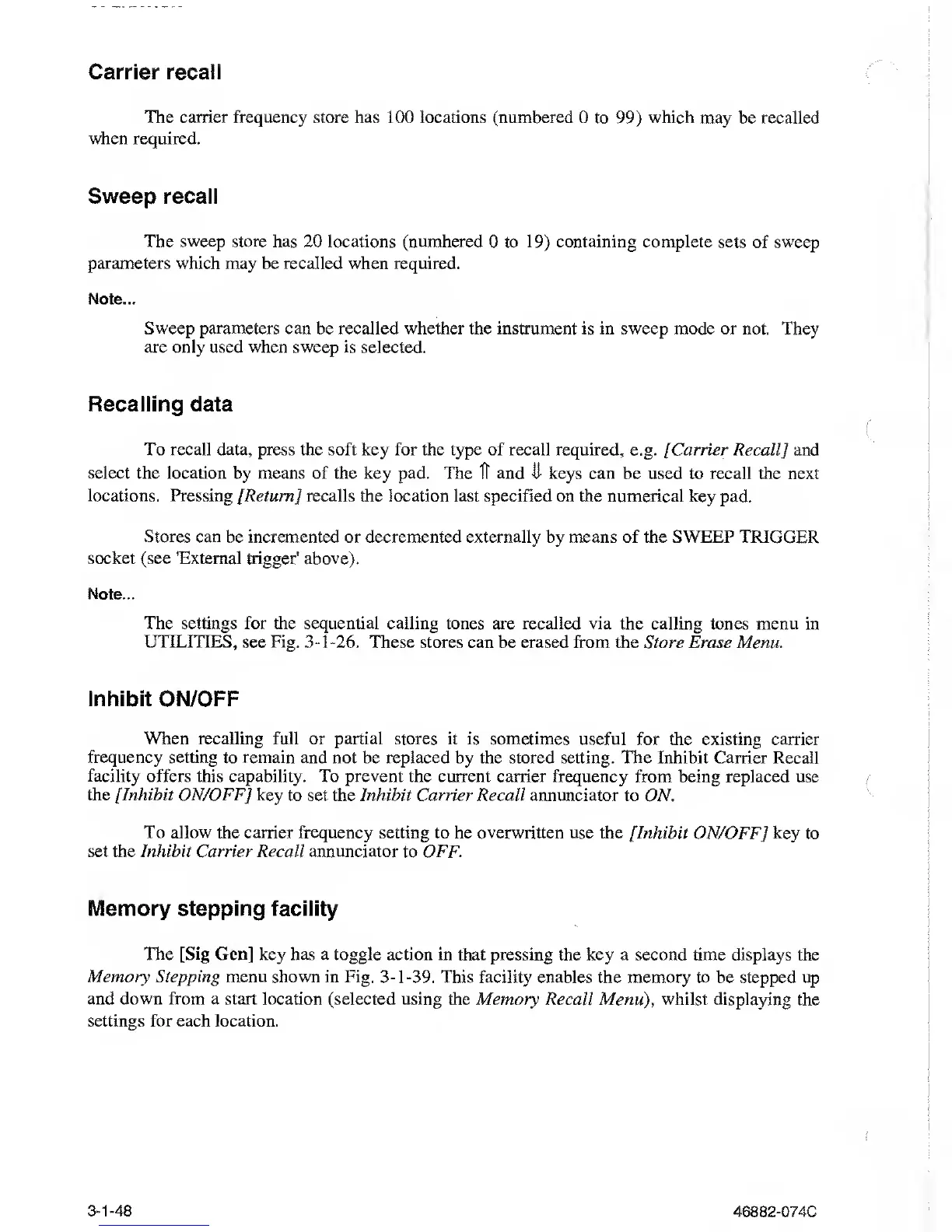 a start location (selected using the Memory Recall Menu), whilst displaying