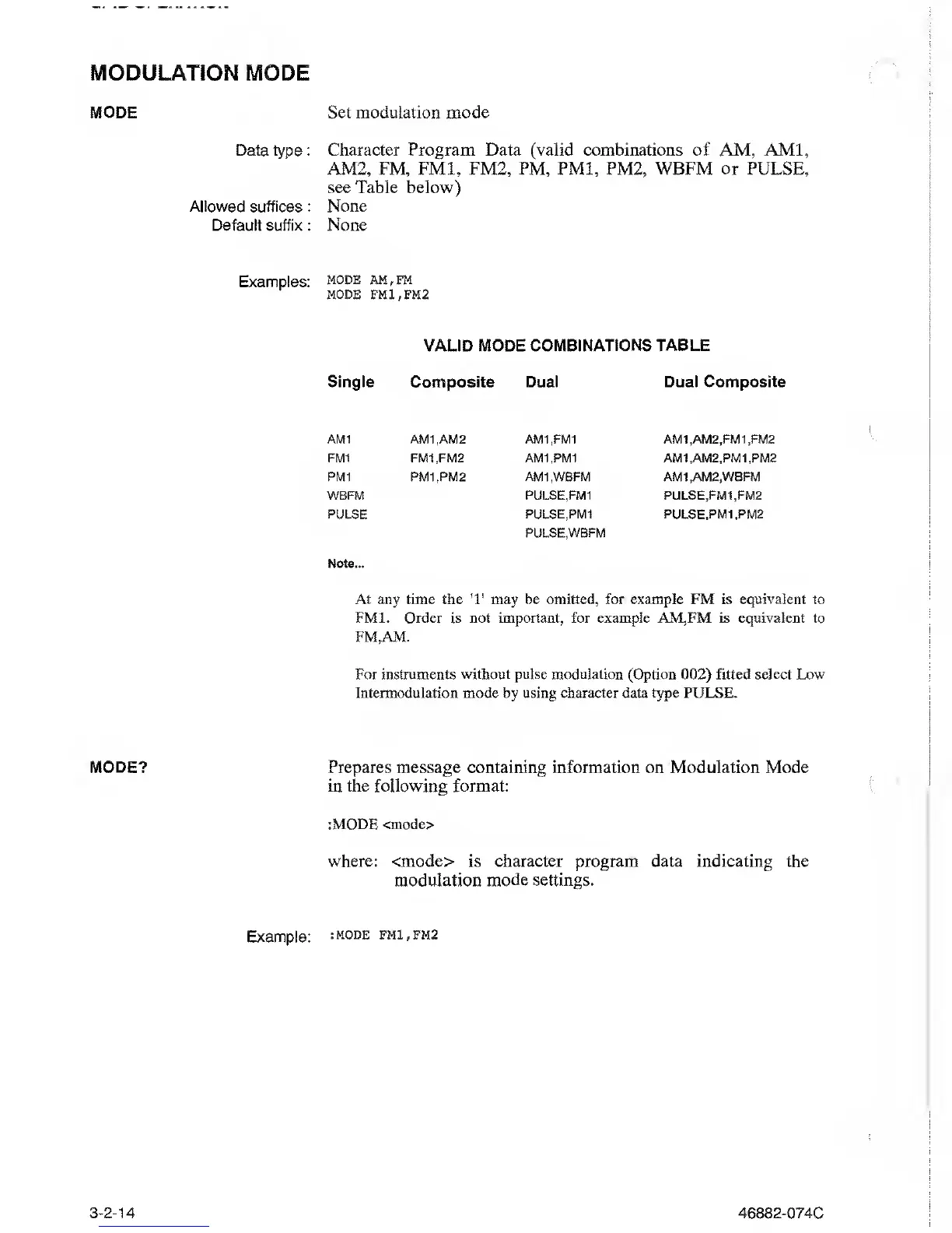 Data type : Character Program Data (valid combinations of AM, AMI,