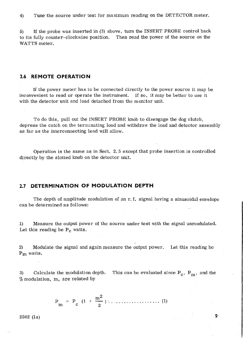 Marconi Instruments TF 2502 - Remote Operation; Determination of Modulation