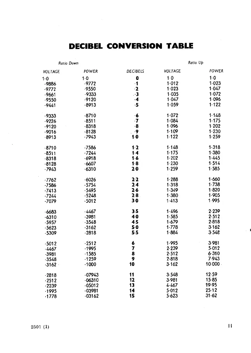 Marconi Instruments TF 2502 - Decibel Conversion Table