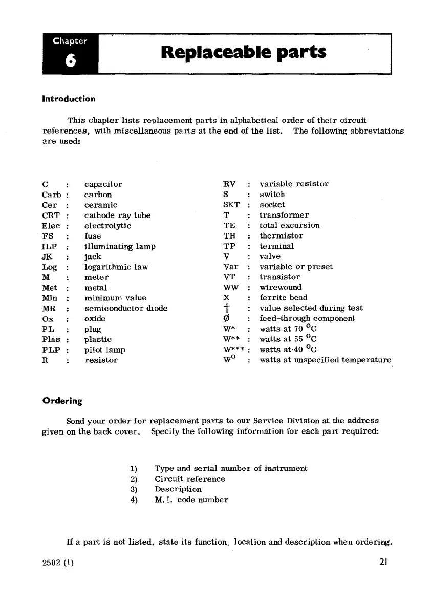 Marconi Instruments TF 2502 - Chapter 6 REPLACEABLE PARTS