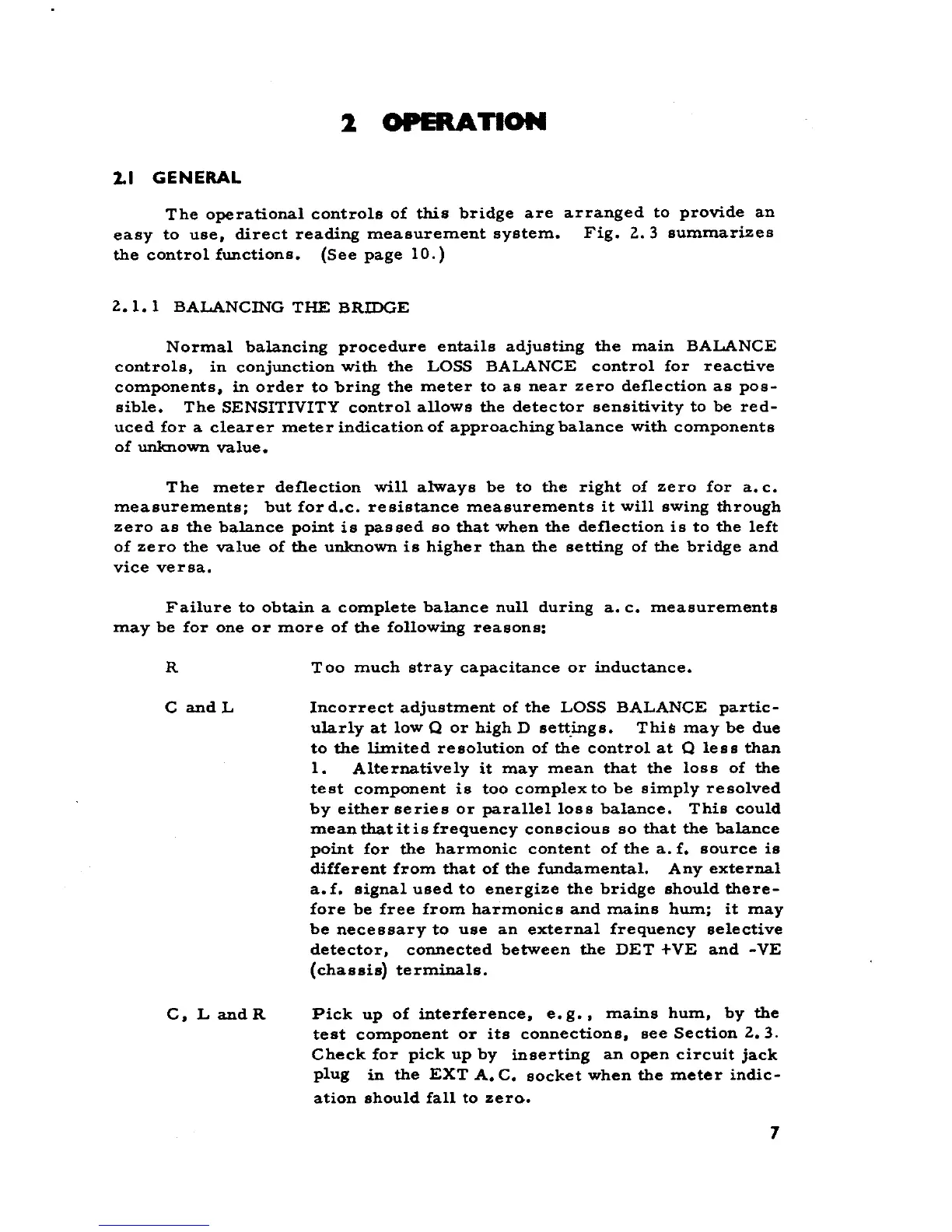 Failure to obtain a complete balance null during a. c. measurements