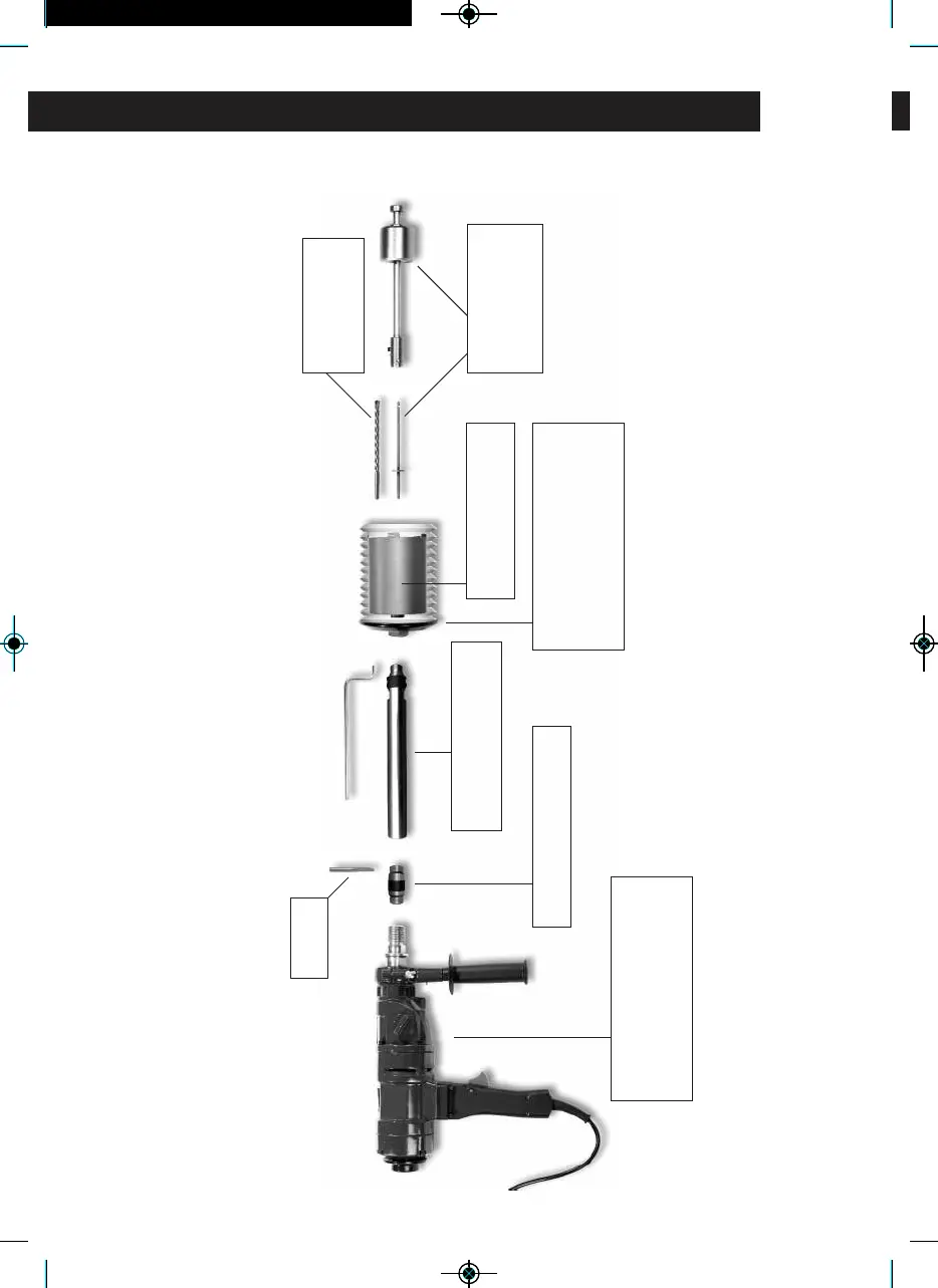 couronne de forage et accessoires.