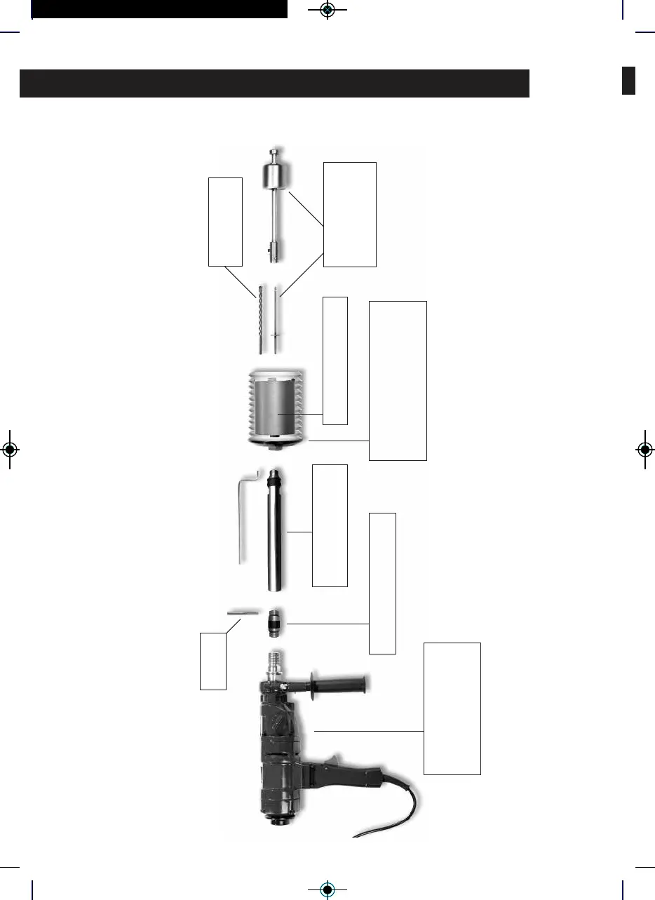 Een werkingsdiagram met de gewone installatie met kernboren en accessoires: