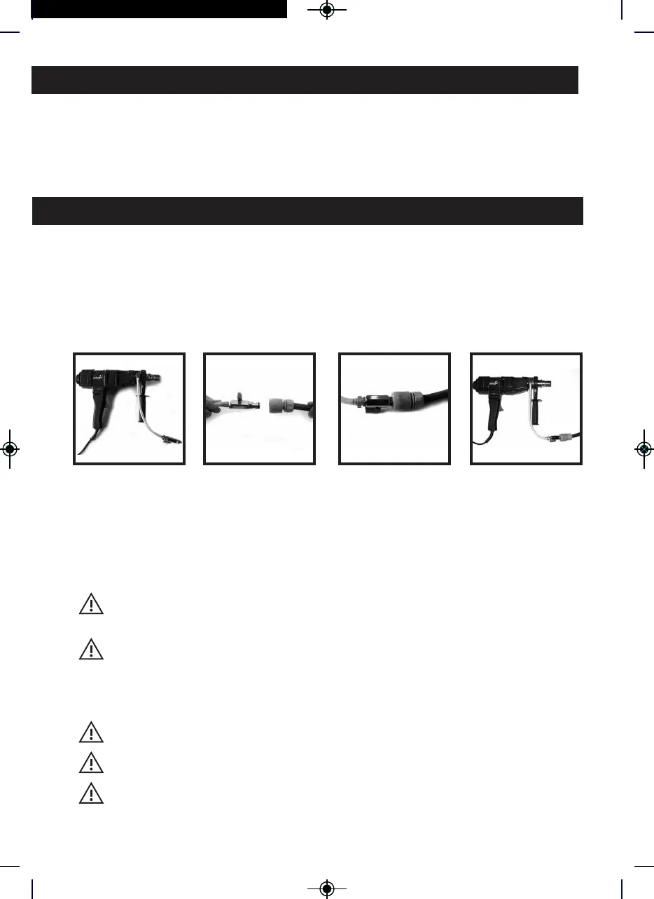 Aansluiting op de watervoorziening voor nat boren met de hand