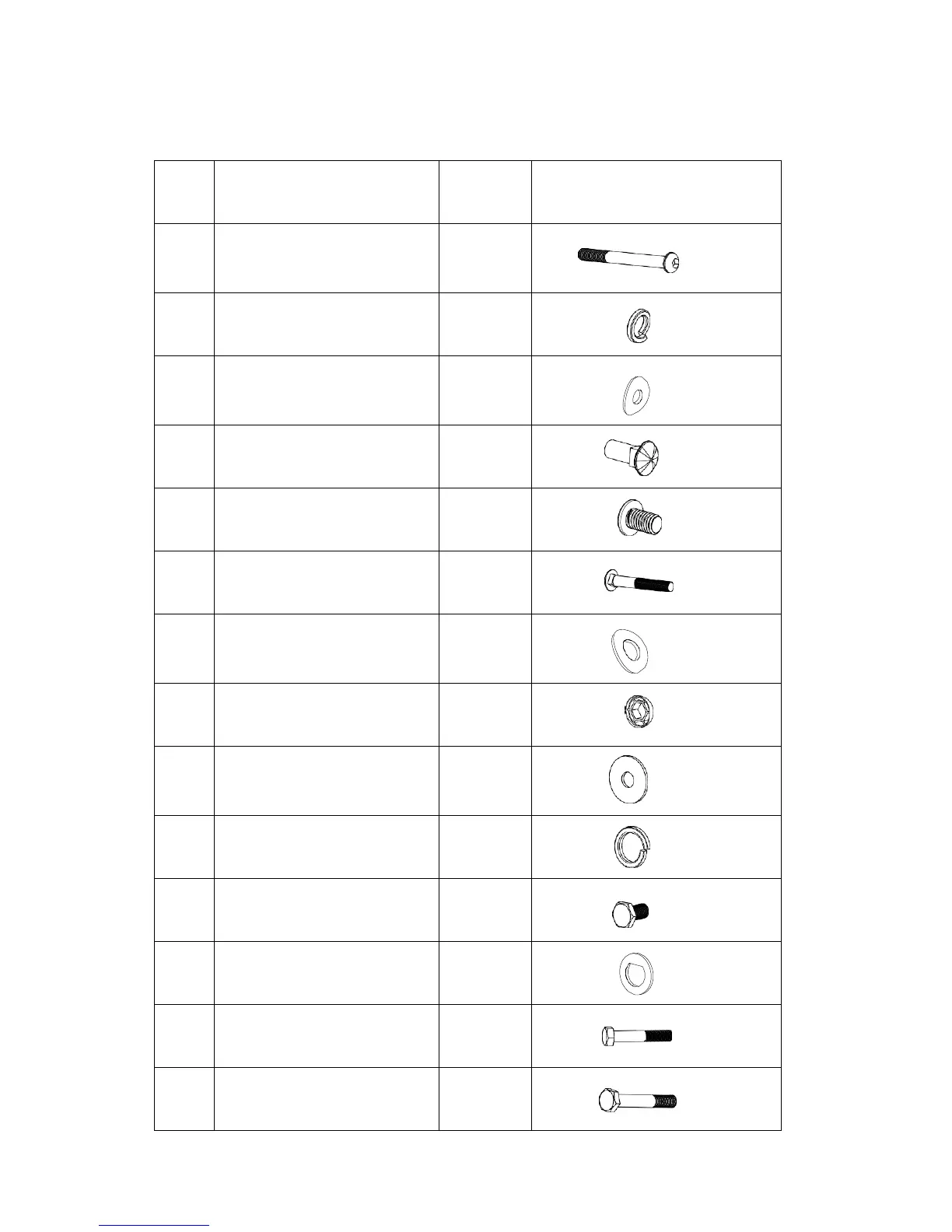 Marcy 1201E - Hardware Packing List; Hardware Parts List