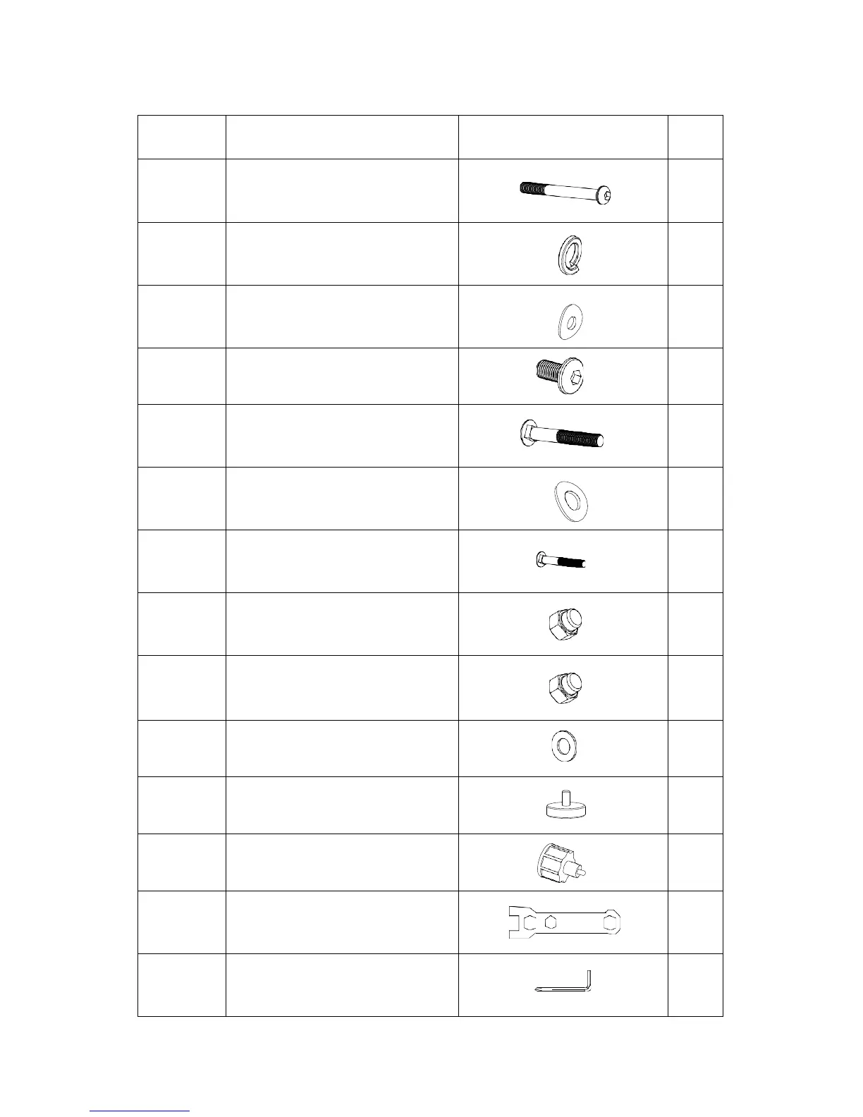 Marcy 1201R - Hardware Packing List