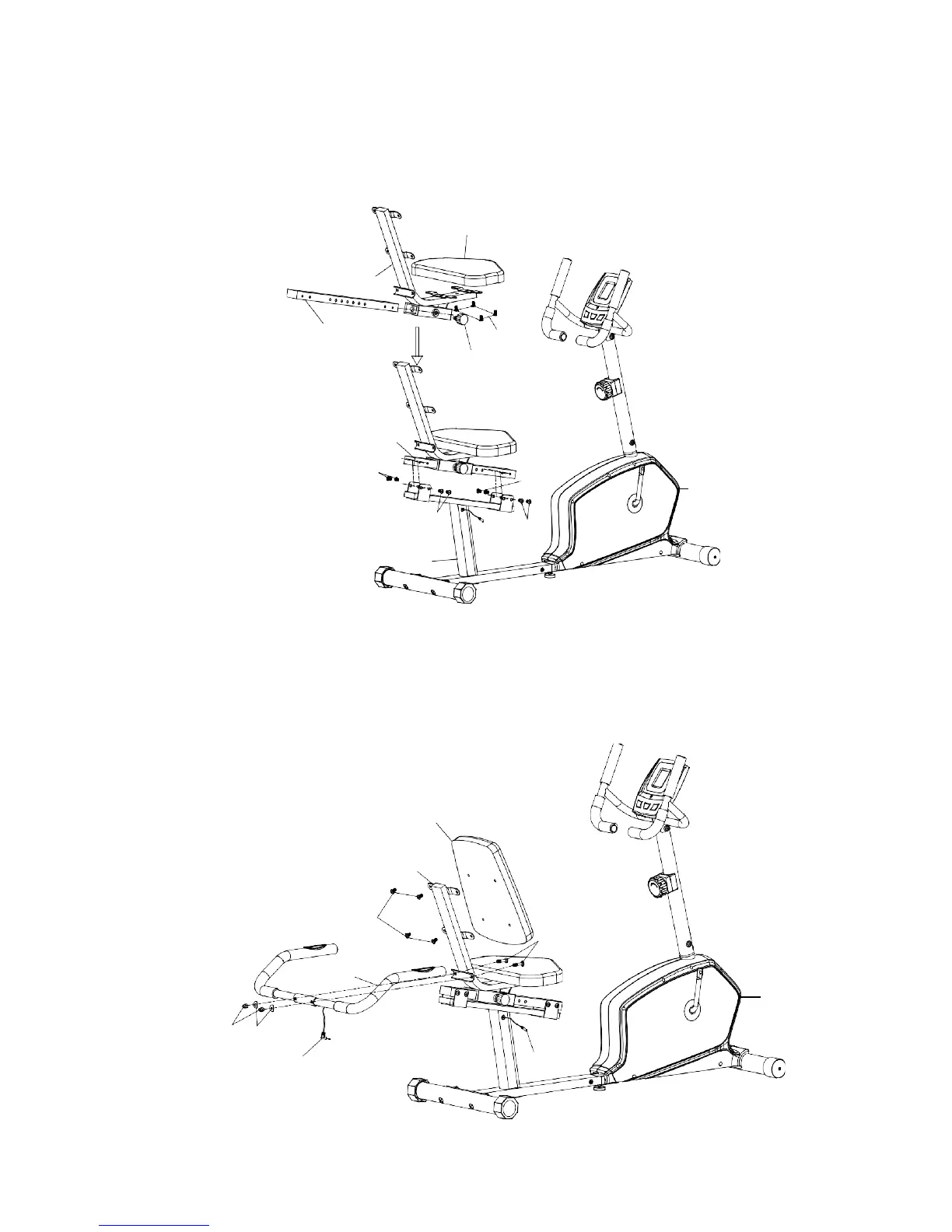 Attach rear handlebar (13) to the seat support bracket (43). Secure using two carriage bolts (28),
