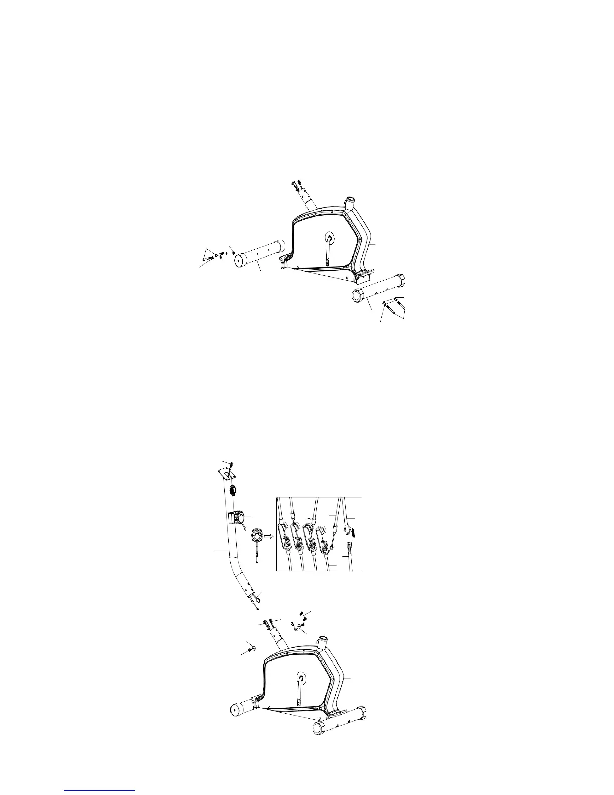 Attach the front stabilizer (2) to the main frame (1), Secure using two curved washer (16),