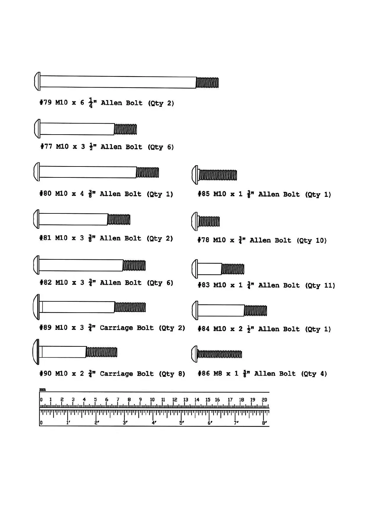 NOTE: The following parts are not drawn to scale. Please use your own ruler to measure the size.