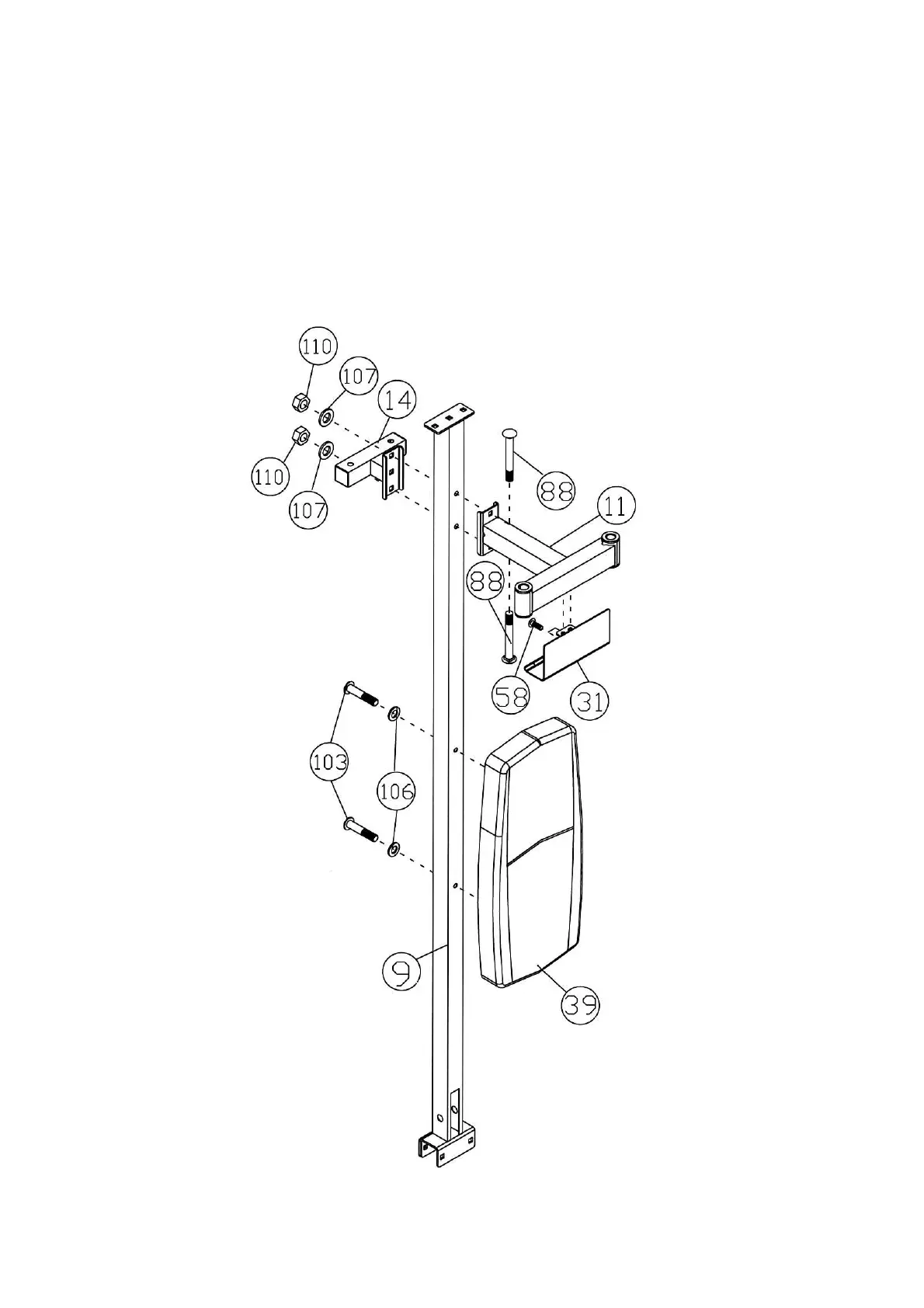 C.) Attach the Backrest Board (#39) to Middle Vertical Frame. Secure it with two M8 x 2 3/8”