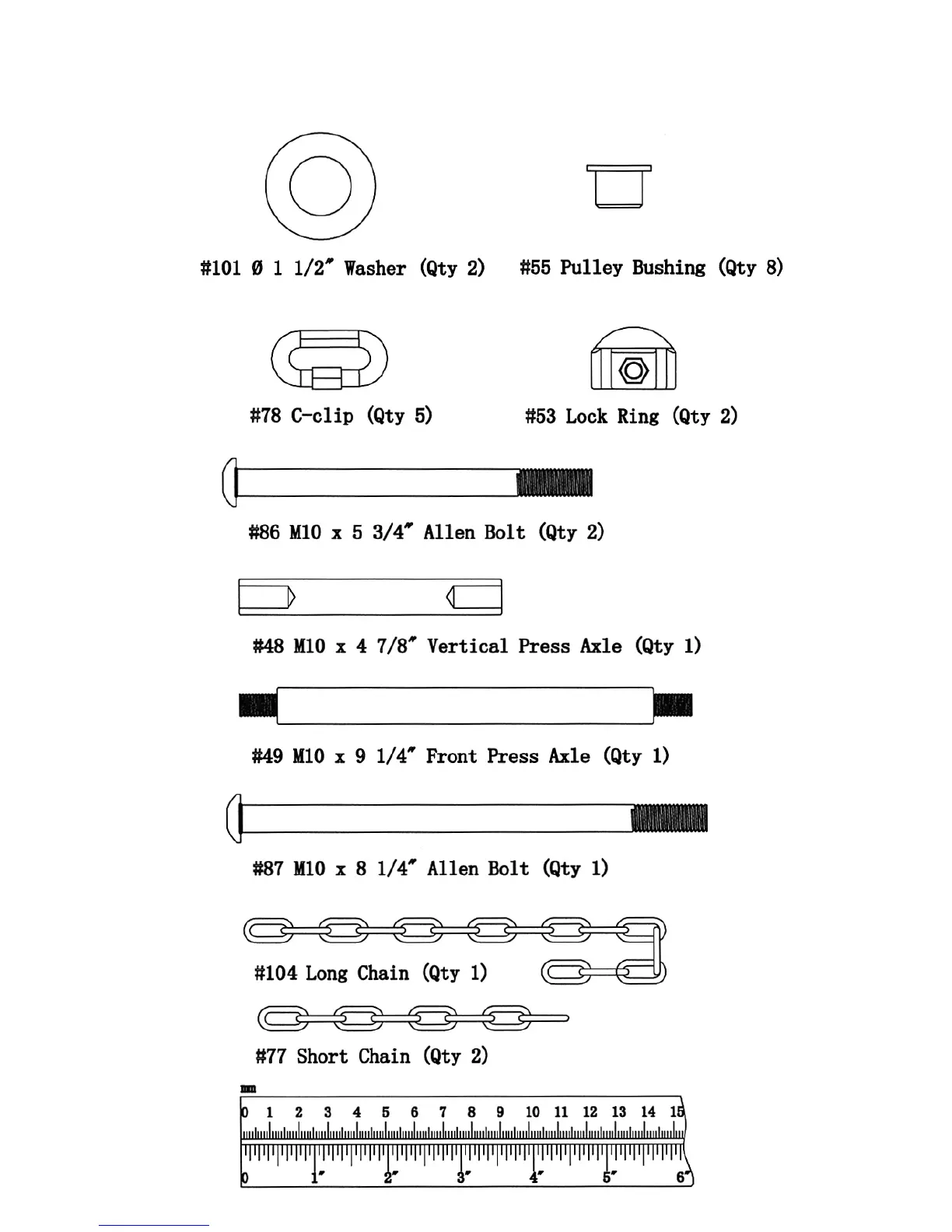 Marcy GS 99 - Hardware Pack - Part 2; Axles, Chains, and Clips