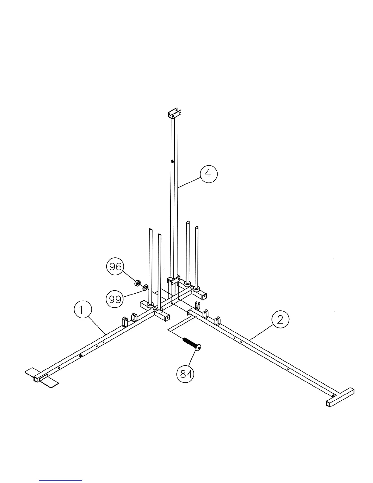 ¾” Carriage Bolts (#84), ¾” Washers (#99), and M10 Aircraft Nuts (#96).