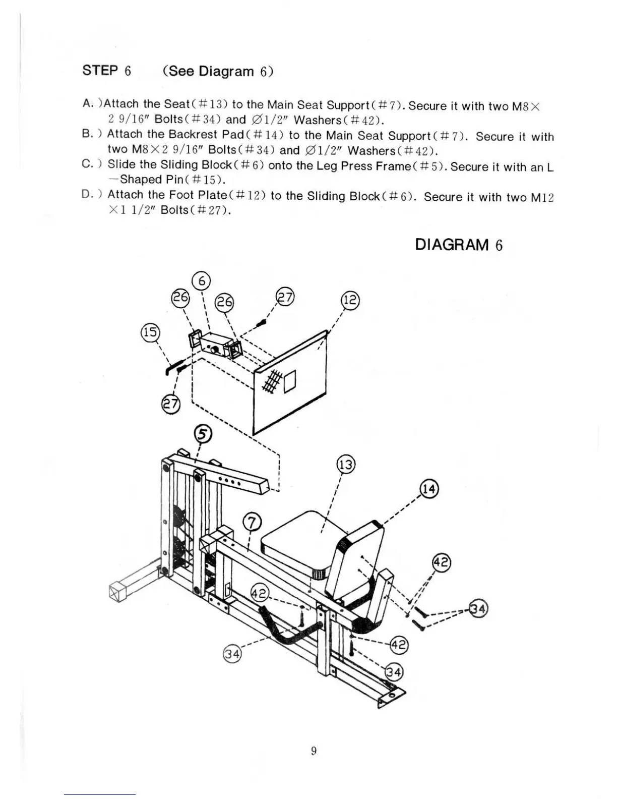 Marcy LP 90 - Step 6: Seat and Foot Plate Installation
