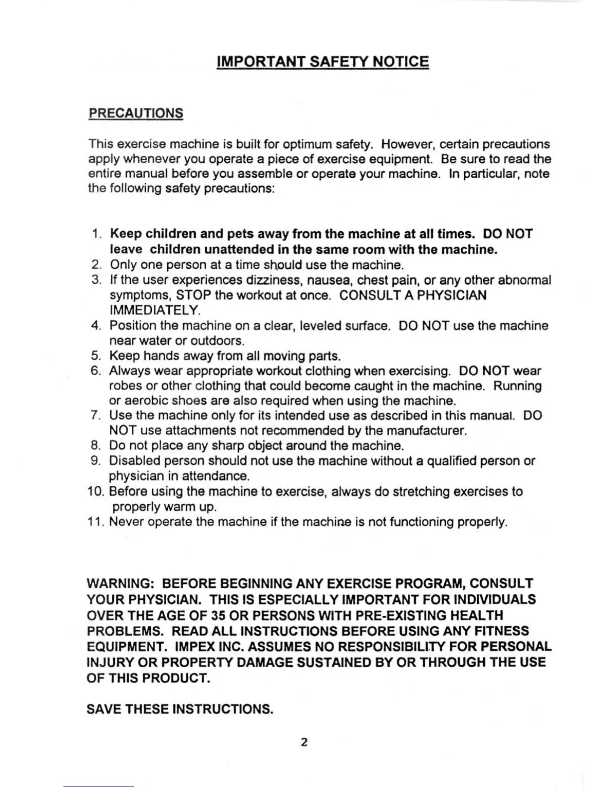 Marcy LP 90 - Important Safety Notice; General Safety Precautions
