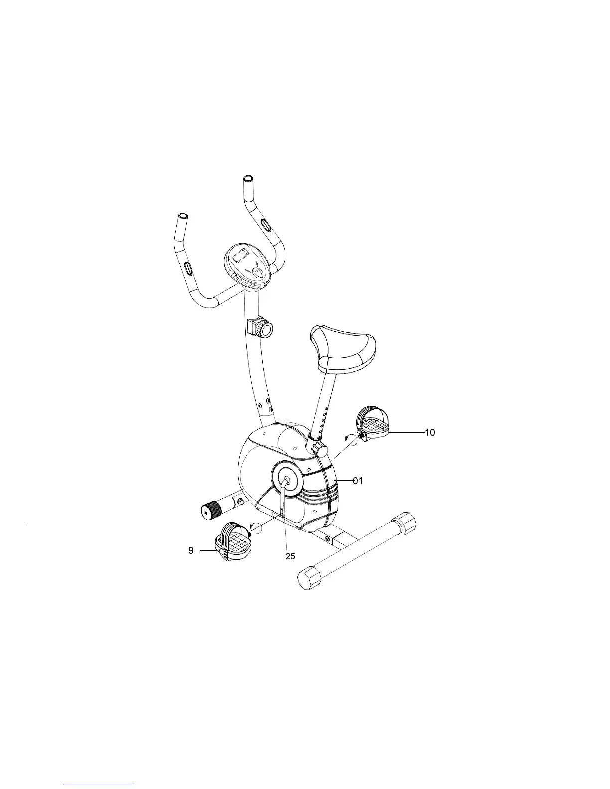 Note: The pedals and crank arms are marked with "R" and "L". The left pedal (L) should be