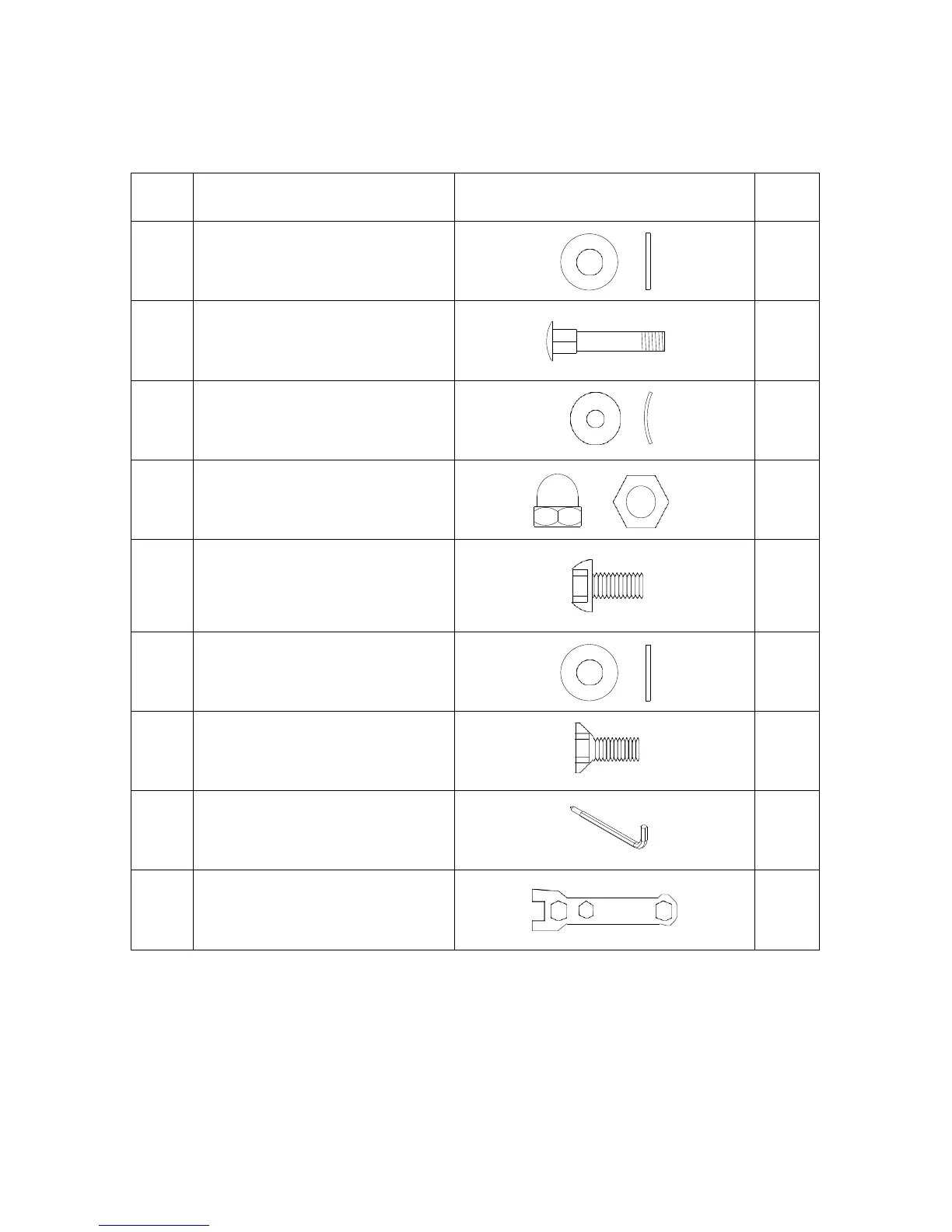 Marcy ME-708 - Product Assembly and Parts; Hardware Packing List